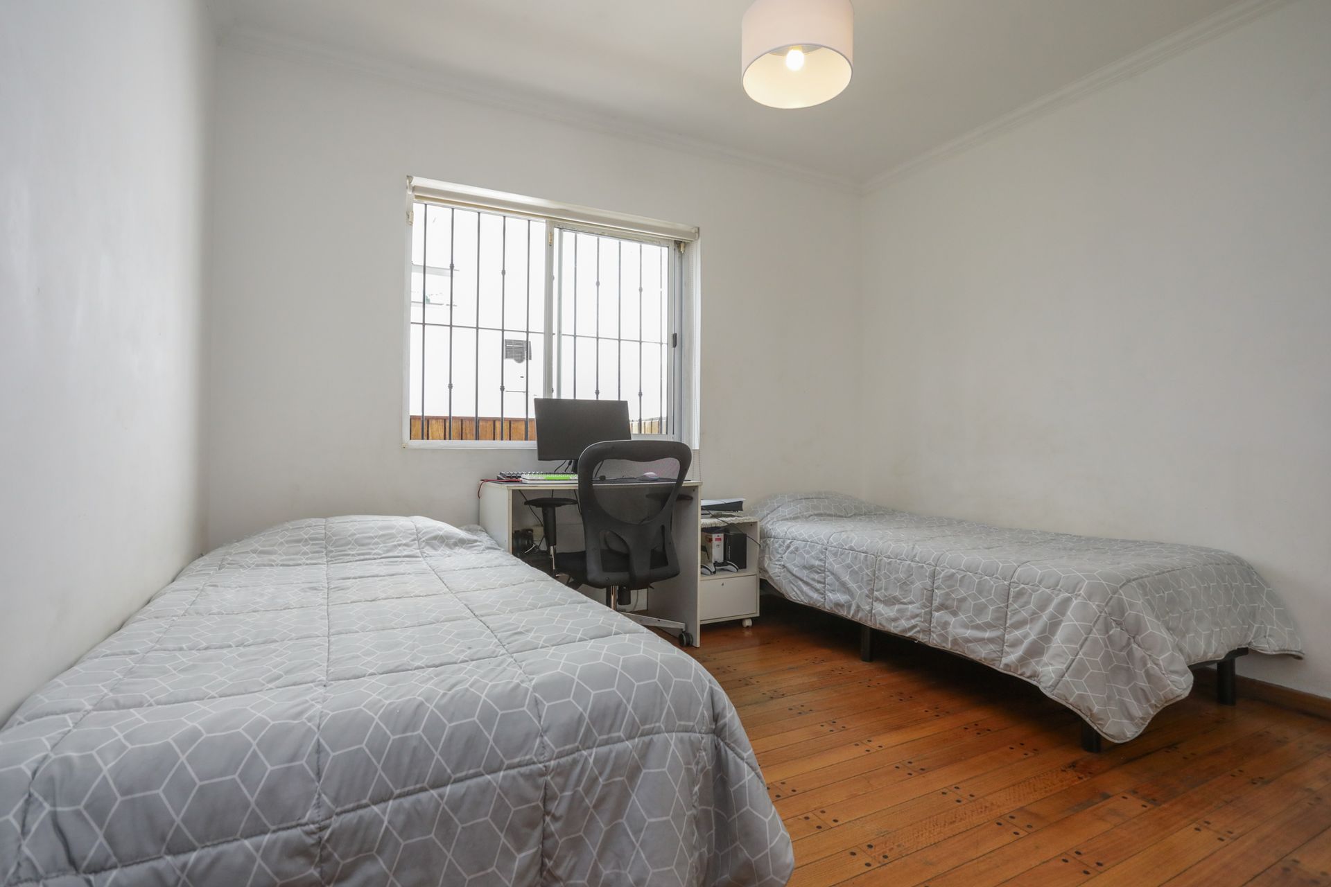 La vivienda se desarrolla en una sola planta, con espacios amplios y abundante luz natural. Cuenta con living, dos dormitorios de 4 × 4 m² con placard interior, baño completo, cocina a gas, comedor con salida al jardín y al quincho equipado con parrilla, toilette, lavadero y garaje cubierto. En el jardín se encuentra un jacuzzi en altura, totalmente cerrado y con calefacción.
