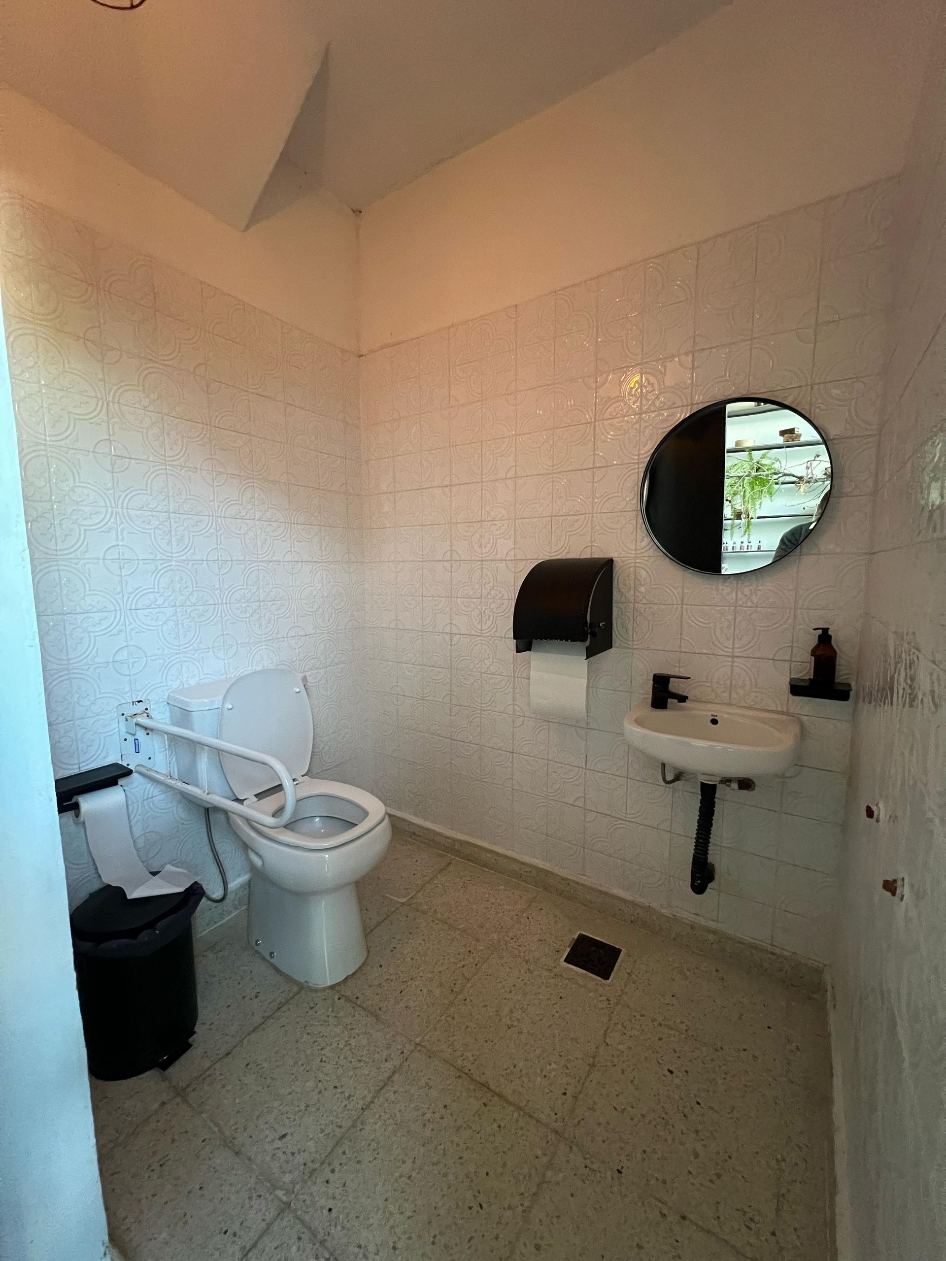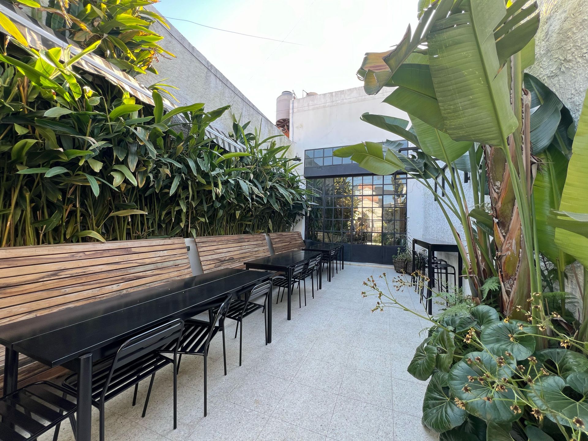 Al fondo se despliega un espacio de doble altura, con dos baños tipo toilette refaccionados a nuevo, que pueden funcionar como salón, distribución o antesala según la necesidad. El salón principal, situado al final del recorrido, se distingue por su gran tamaño, altura elevada y abundante luz natural. En este espacio se construyó un entrepiso que ha servido como oficinas, aportando flexibilidad funcional.