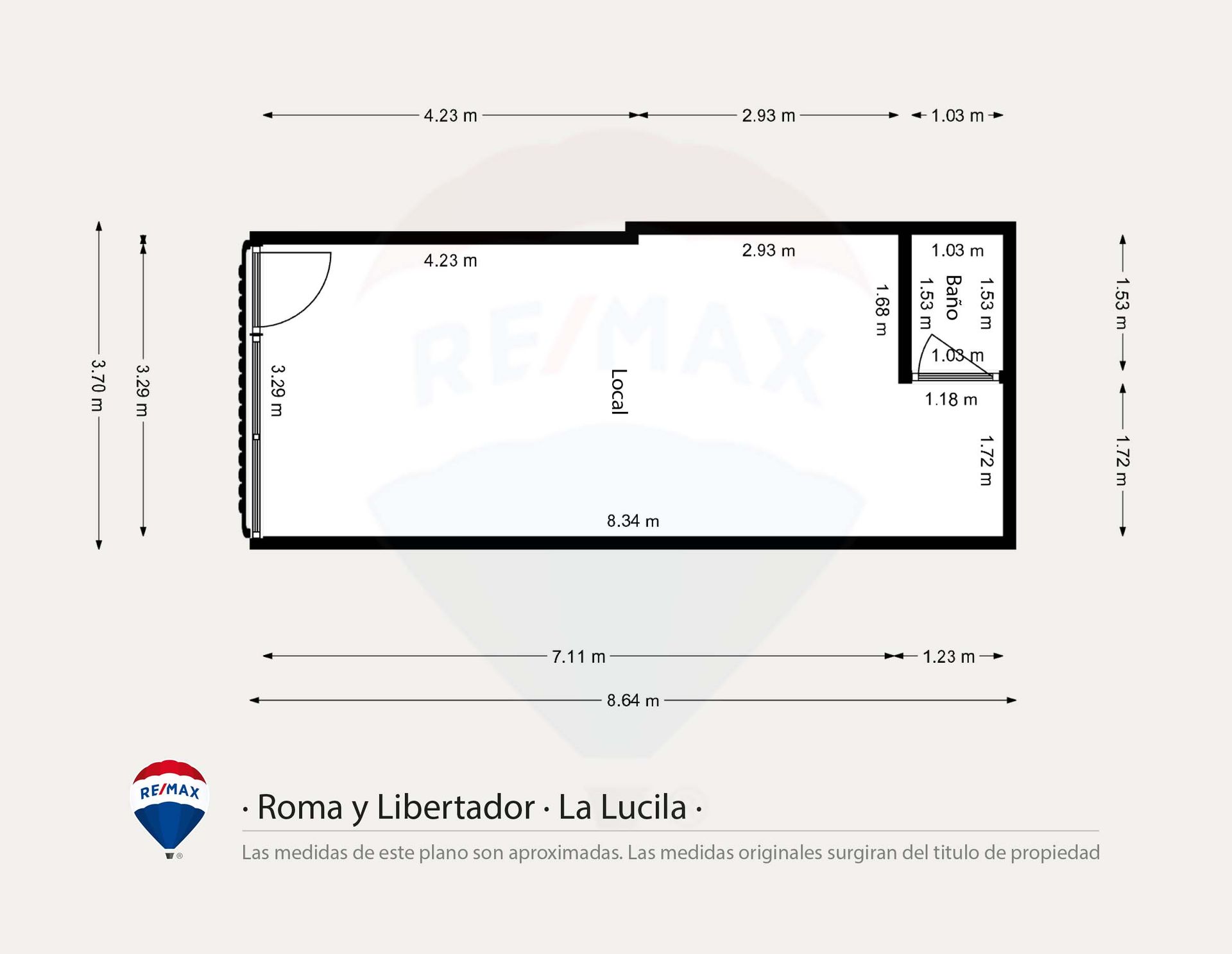 Local de 31,87 m² ubicado en la esquina de la calle Roma con Av. del Libertador, en el barrio Olivos. La esquina cuenta con cuatro unidades adyacentes, todas con una distribución funcional en planta alta.