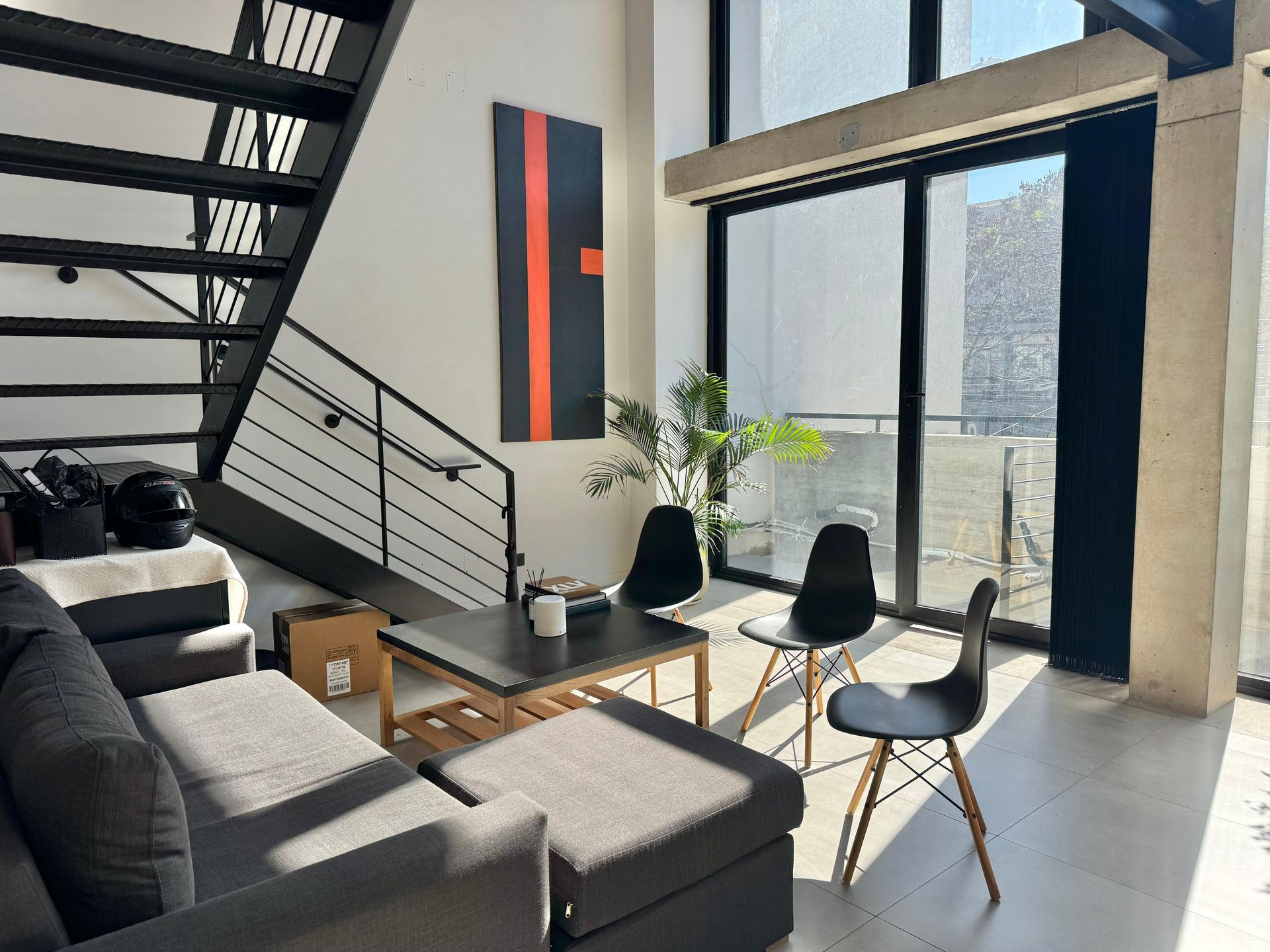 La estructura ofrece doble altura y ventanales de doble vidrio, creando un entorno luminoso y aireado. Dos unidades de aire acondicionado garantizan un clima confortable en todo momento. Además, el inmueble dispone de dos cocheras fijas y cubiertas, con acceso mediante portón eléctrico.