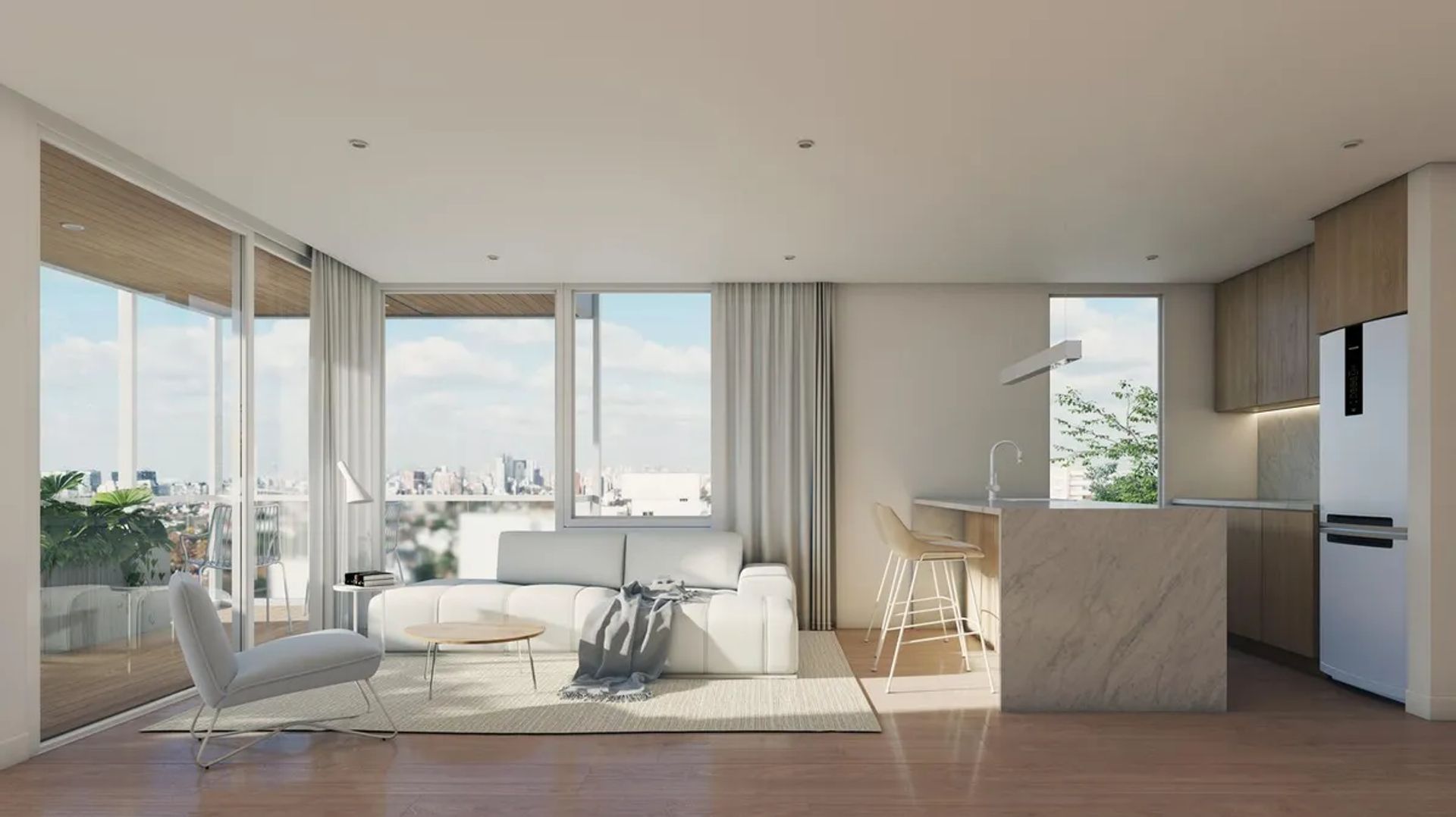 El edificio alberga 90 unidades de 2 y 3 ambientes, con tamaños que varían entre 55 y 93 m². La planta baja destaca por sus amplios espacios verdes y un sector de coworking exclusivo, ideal para quienes buscan un equilibrio entre vida profesional y residencial. Entre los amenidades se encuentran piscina climatizada con solárium, jacuzzi, salón de usos múltiples in‑out con parrilla y living open air y cocina, y parrilla exterior, creando un entorno de recreación y socialización.