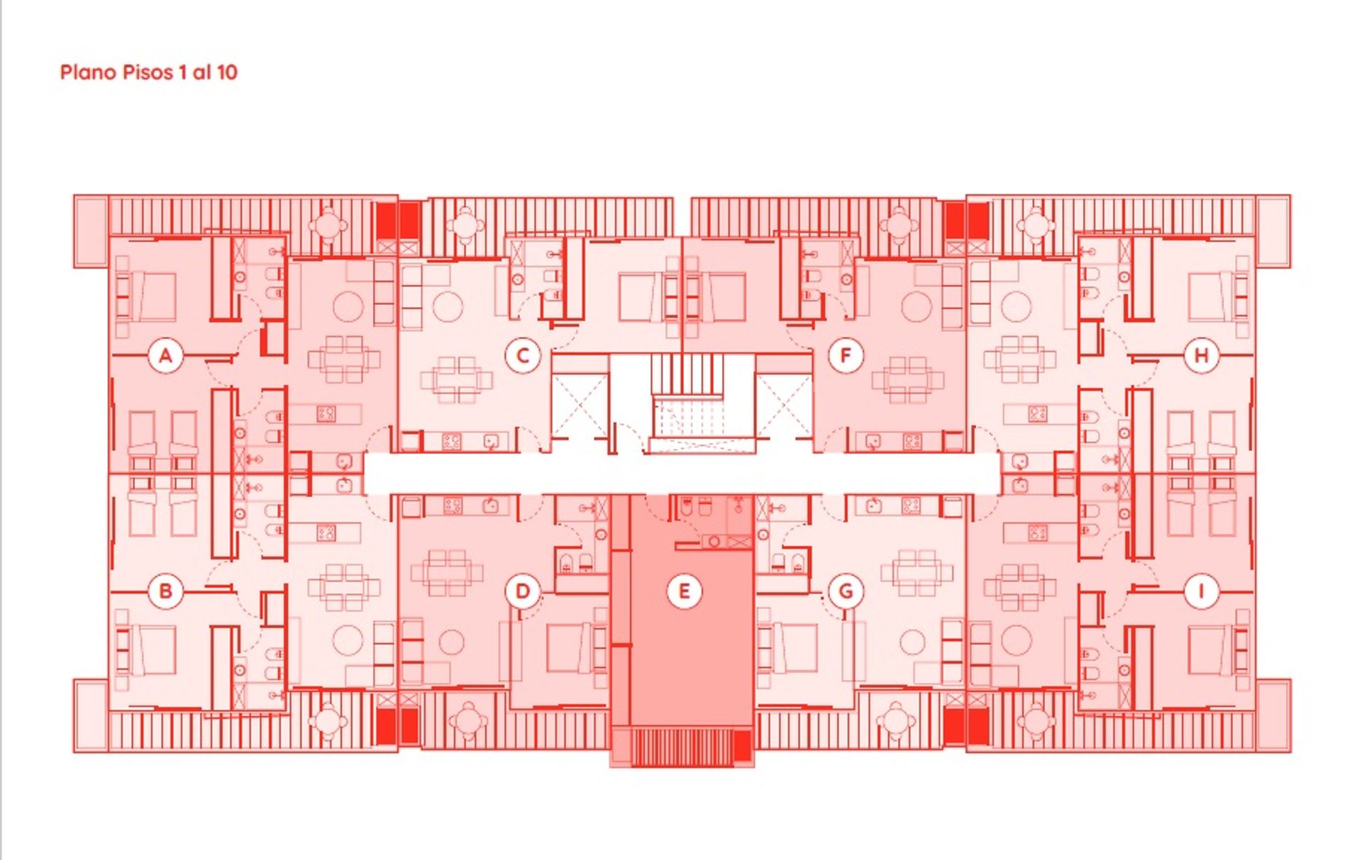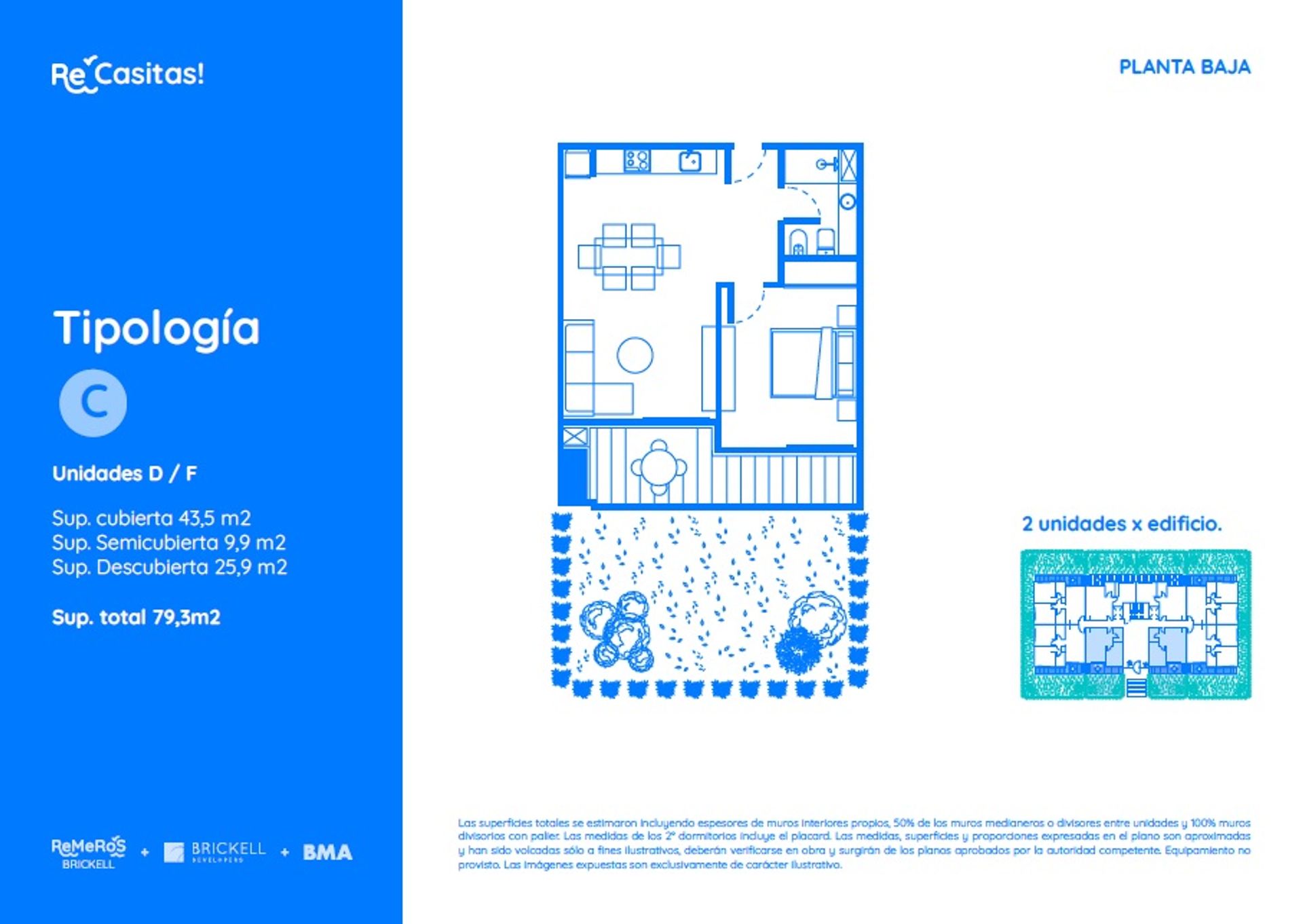 La unidad de dos ambientes se ubica en el tercer piso de la Torre Ibiza. Cuenta con una cocina integrada, un baño completo, un dormitorio y un amplio balcón accesible desde el living. La superficie cubierta es de 43,5 m², la semicubierta 9,90 m² y el total 53,40 m². El diseño interior ofrece excelente luminosidad y materiales de primera calidad, con carpinterías en aluminio negro tipo HYDRO con doble vidrio hermético, puertas de madera maciza y acabados en porcelanato gris con detalles en madera.