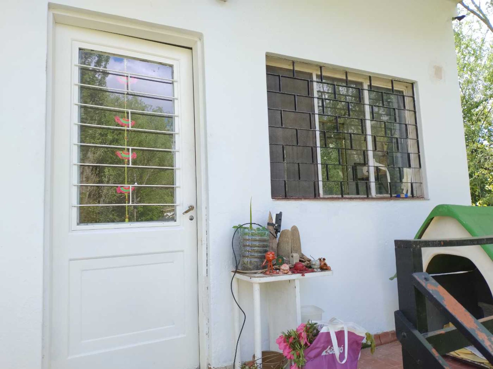 La distribución interior se compone de un living comedor de 3,10 m × 4,30 m equipado con salamandra, dos dormitorios de 3 m × 3 m con pisos de madera, una oficina de 1,70 m × 3 m, una cocina de 1,80 m × 3,50 m y un baño de 1,40 m × 3,50 m. Un deck de madera en la zona de la altura conecta la cocina con la oficina, creando un espacio funcional y abierto. La casa presenta ventanas y puertas de aluminio, una galería y techos de losa, mientras que el monoambiente de 50 m² en la planta baja cuenta con ventana y puerta de aluminio, además de un área de guardado.
