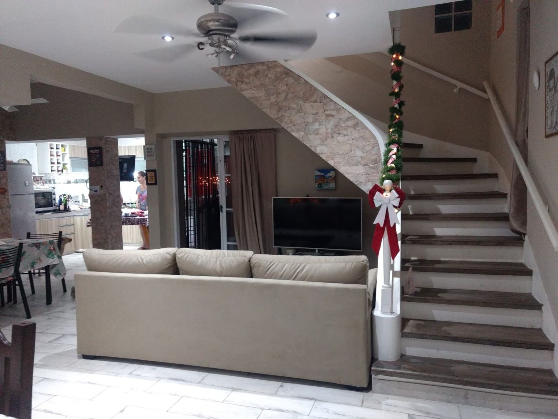 Otra escalera lleva a una terraza que cubre toda la superficie de la propiedad, con un espacio dedicado para quincho y parrilla, ideal para reuniones al aire libre.
