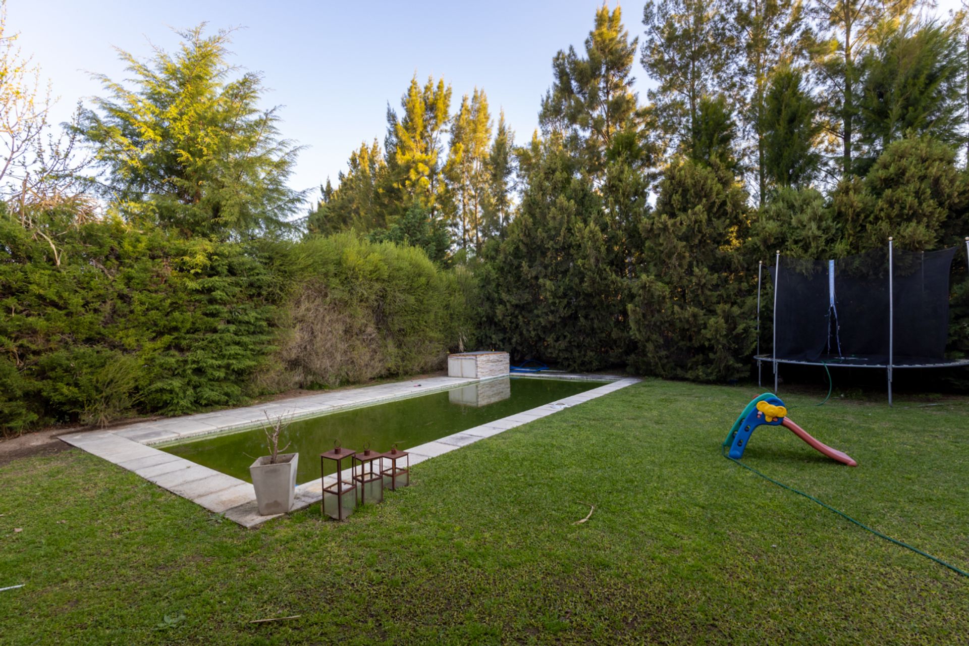 El exterior de la propiedad es una joya: una gran galería cubierta que integra sector de living y sector de parrilla, una piscina que se convierte en protagonista en verano, un amplio cuarto de guardado para mantener todo en orden y un baño exterior que evita el tránsito innecesario al interior. Además, la vivienda dispone de cochera cubierta para un vehículo y cochera descubierta para otro.