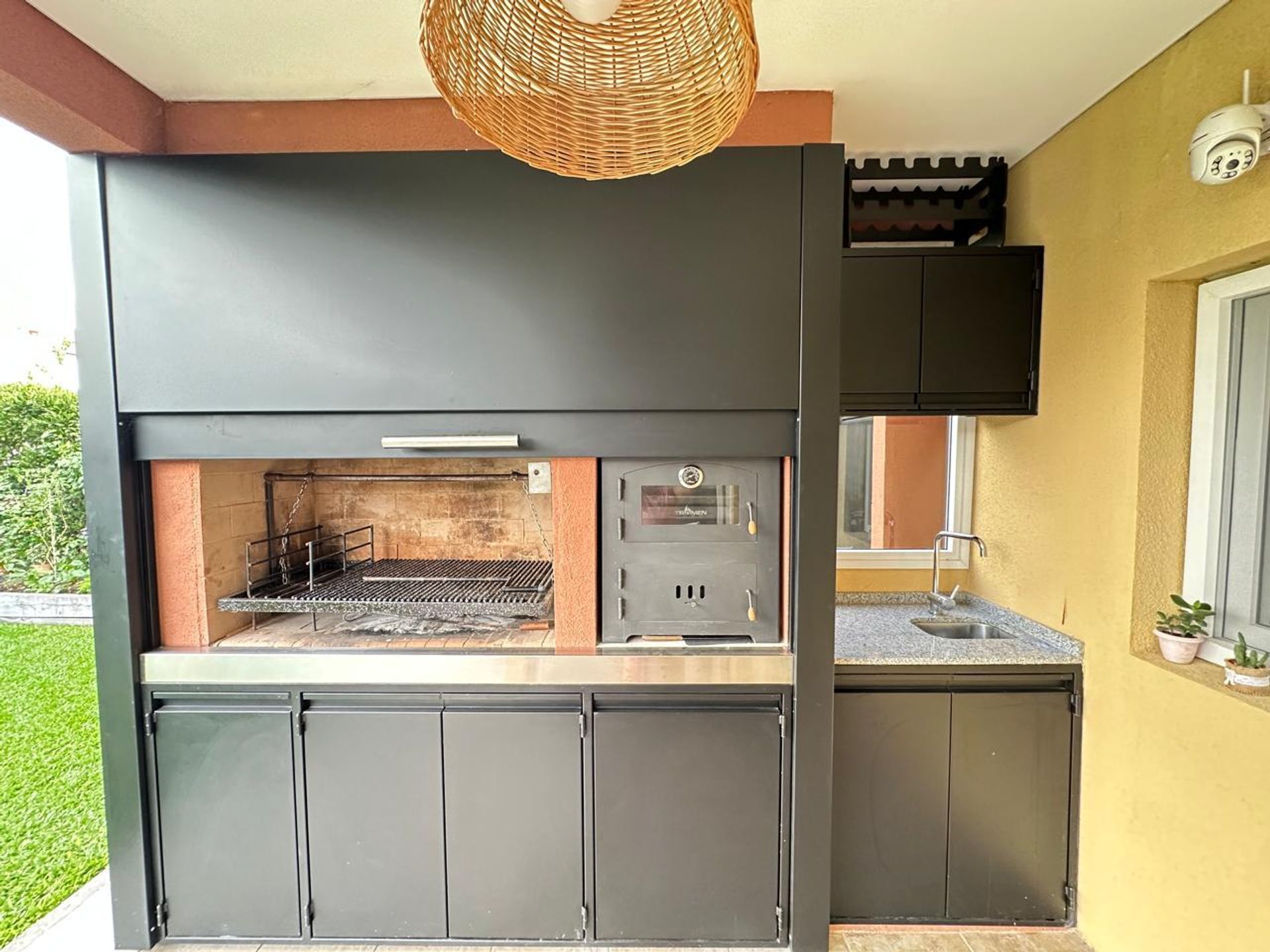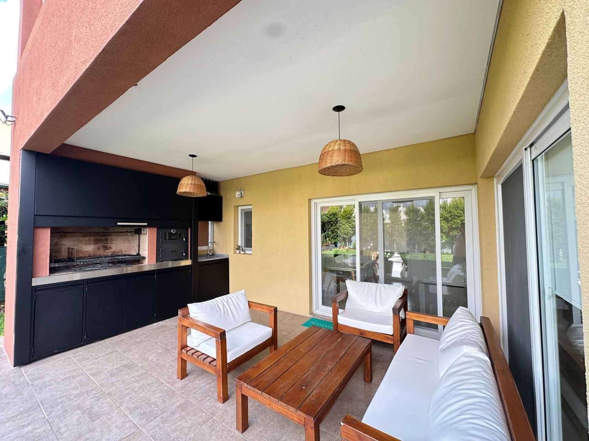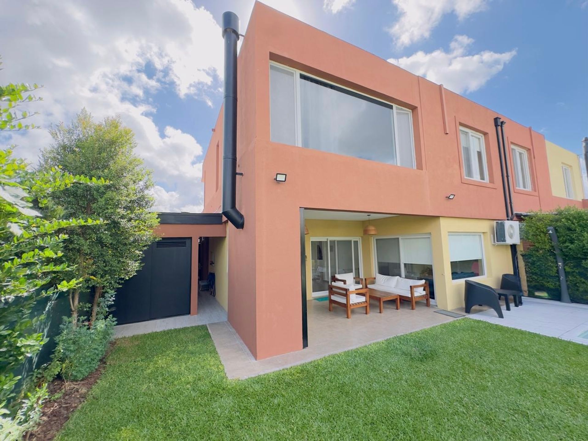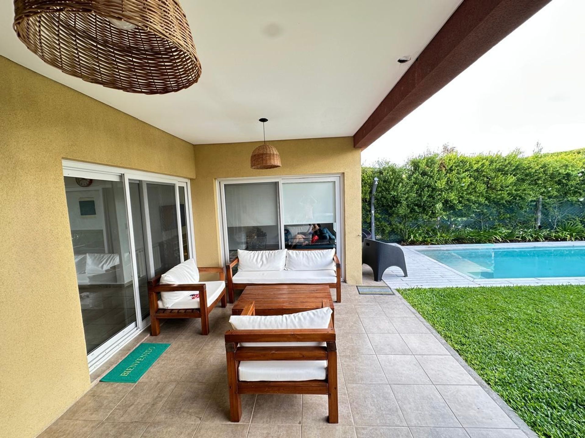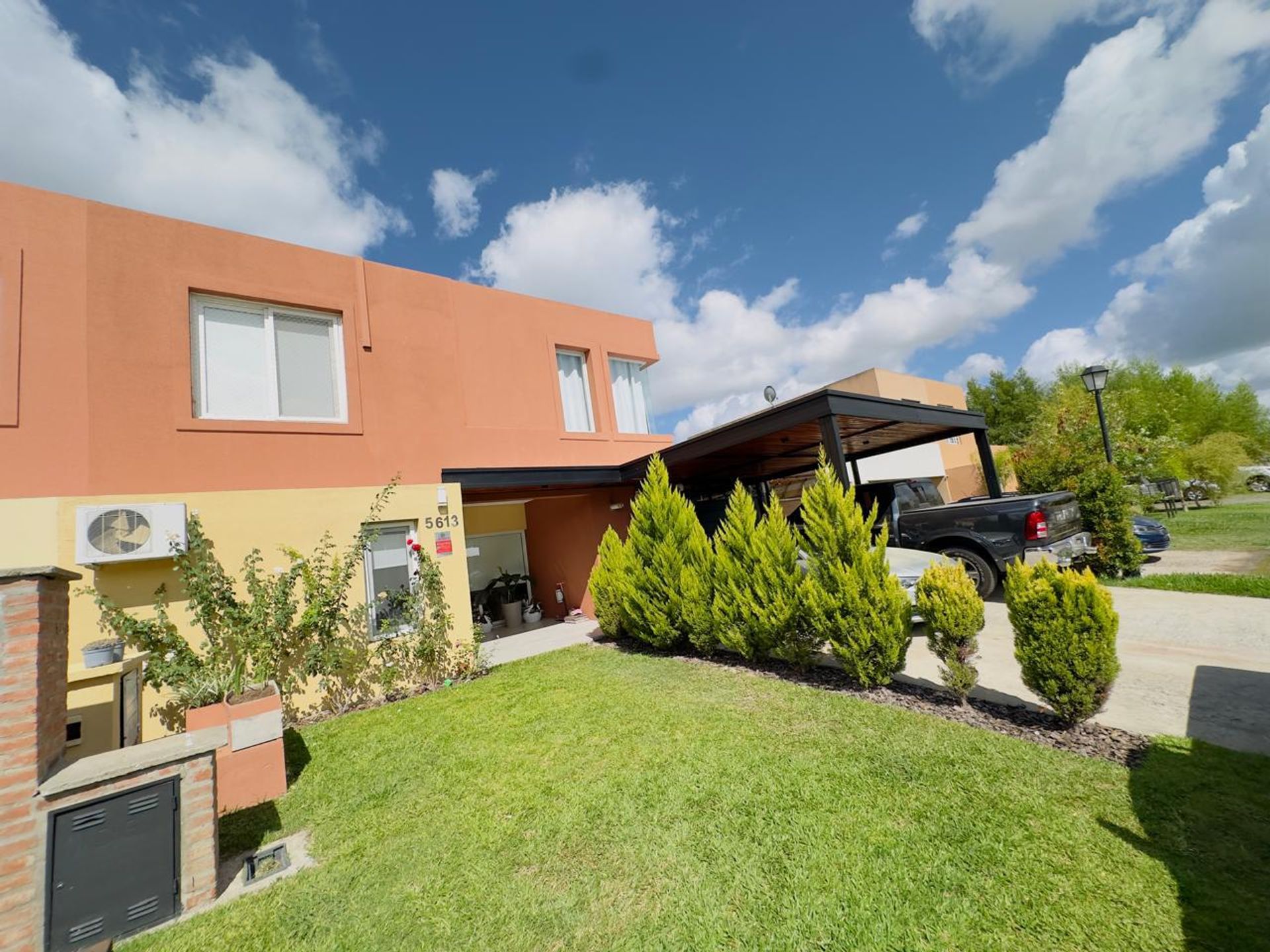 En la planta alta se ubican cuatro dormitorios, entre los cuales el principal cuenta con una habitación accesoria convertida en vestidor. Además, dispone de un baño completo. La entrada cuenta con una cochera semicubierta y una gran pérgola techada con revestimiento en madera.