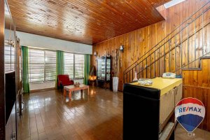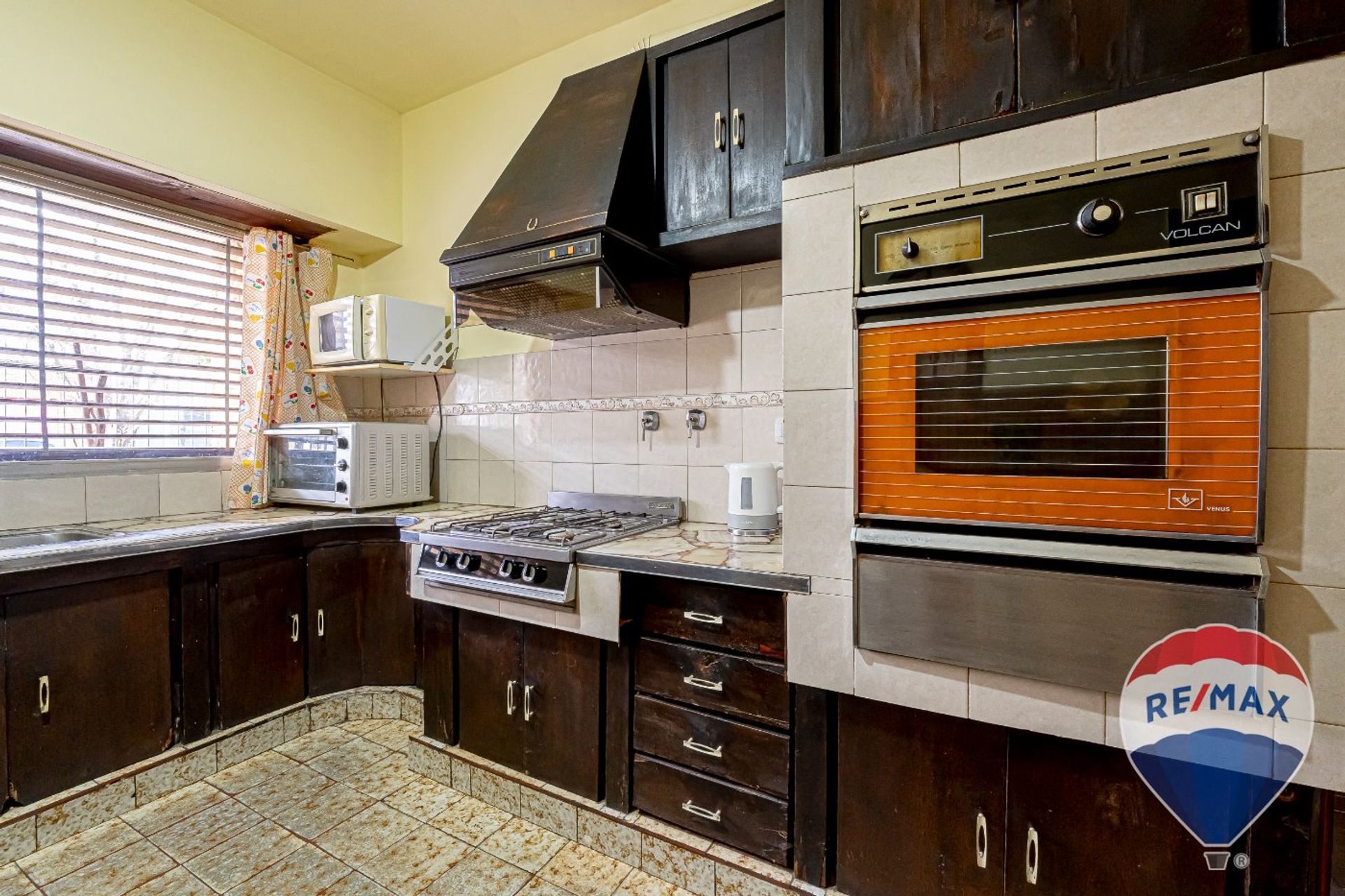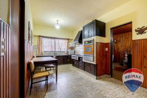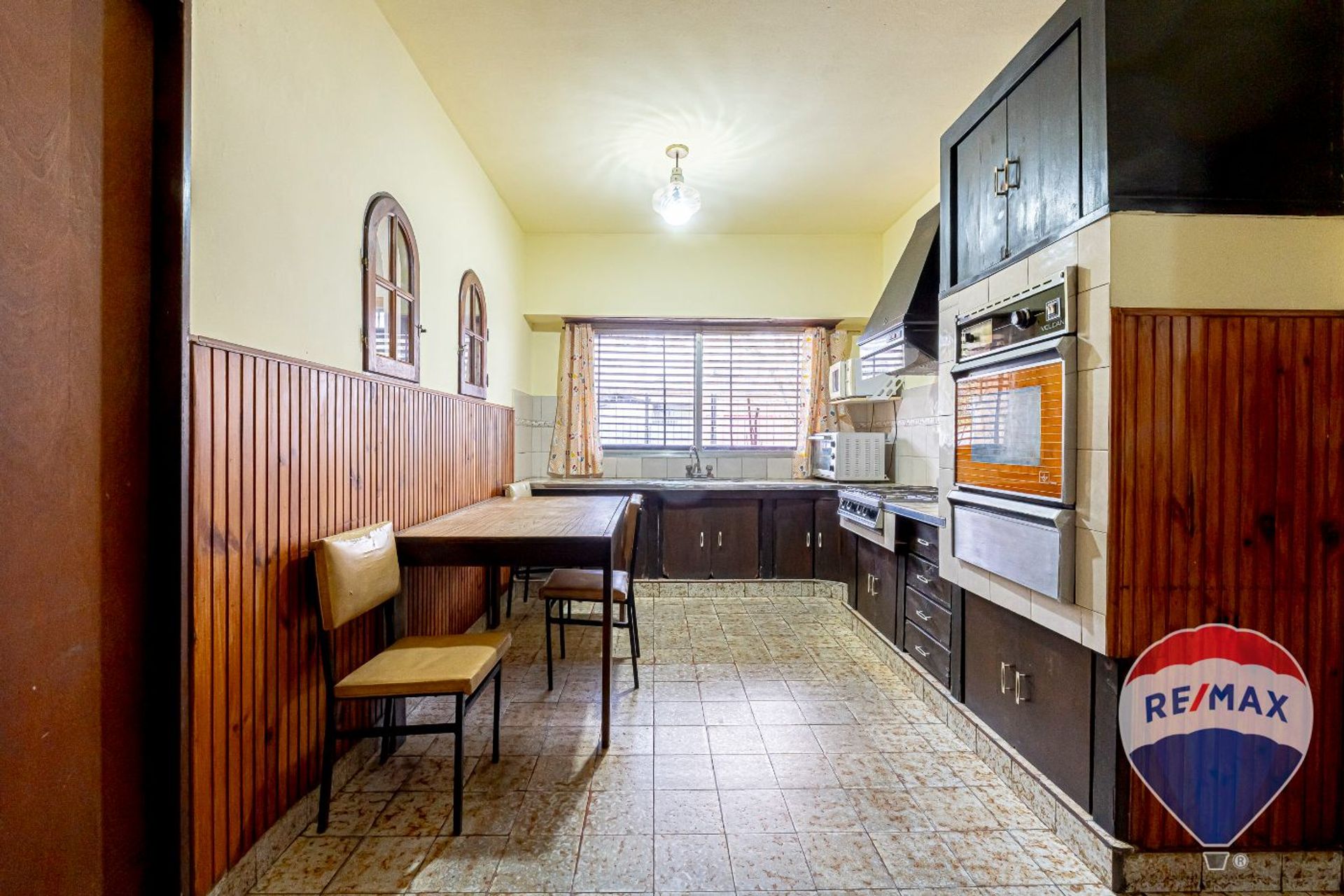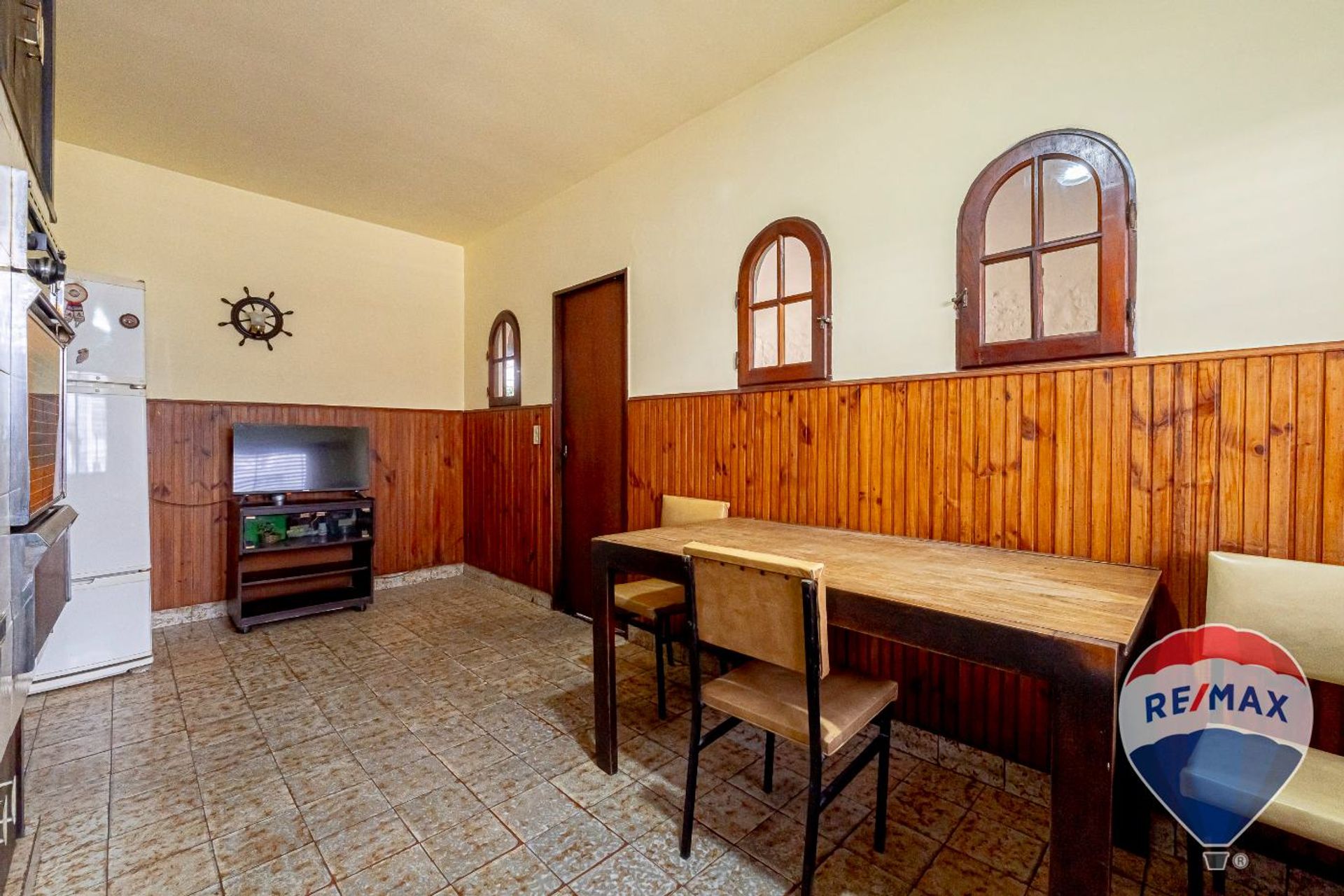 En la planta baja se destacan un gran living comedor con acceso directo al jardín y una cochera descubierta que protege la entrada principal. La cocina, con puerta que conduce a la cochera, se integra al comedor, creando un espacio funcional y luminoso. Un baño de recepción complementa la zona de entrada. La cochera cubierta dispone de espacio para dos automóviles de gran porte. Además, se encuentra un departamento de 35/40 m², con dos ambientes, un baño y una cocina, ubicado en la parte trasera del inmueble. En el fondo del terreno se dispone de un quincho amplio con amplias áreas de almacenamiento.