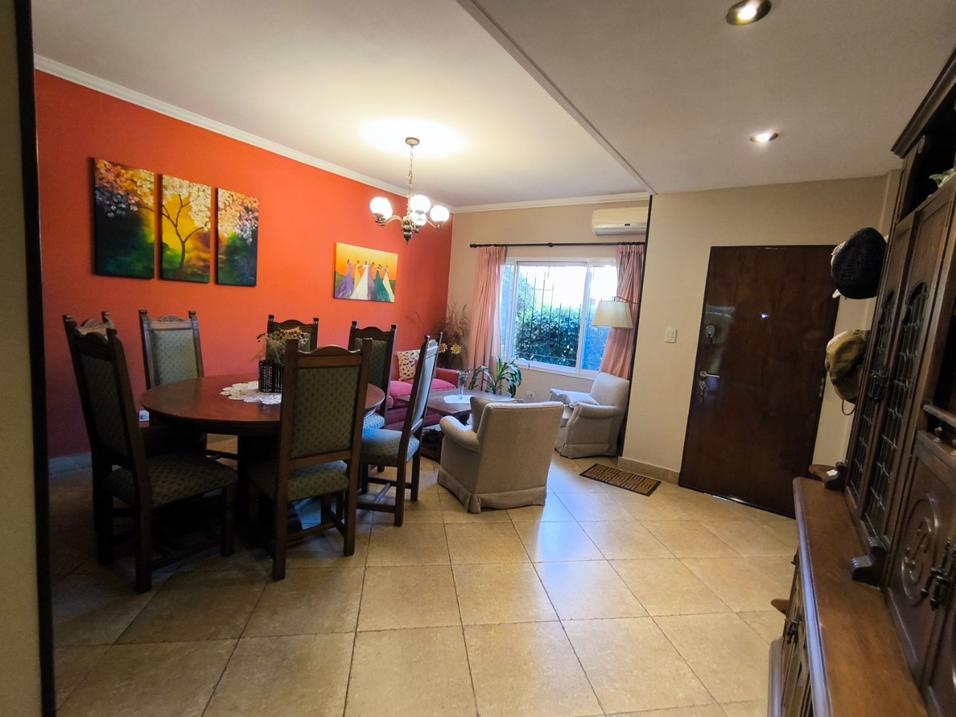 La entrada principal se abre a una cochera con portón automático, ofreciendo un acceso práctico y seguro. Al ingresar, un amplio living-comedor se ilumina con un gran ventanal que da a la calle, creando un ambiente diáfano y acogedor. Un hogar a leña añade calidez durante los meses más fríos.