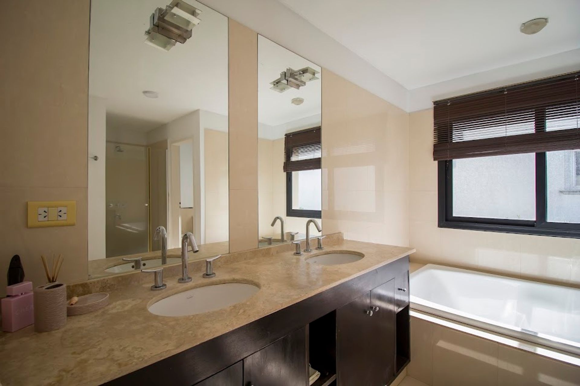 La distribución cuenta con 5 ambientes principales, incluyendo 4 dormitorios. El dormitorio principal se presenta como una amplia suite con vestidor. La vivienda dispone de 4 baños completos, un toilette de servicio y una habitación de servicio con baño propio, garantizando espacios diferenciados para cada necesidad familiar.
