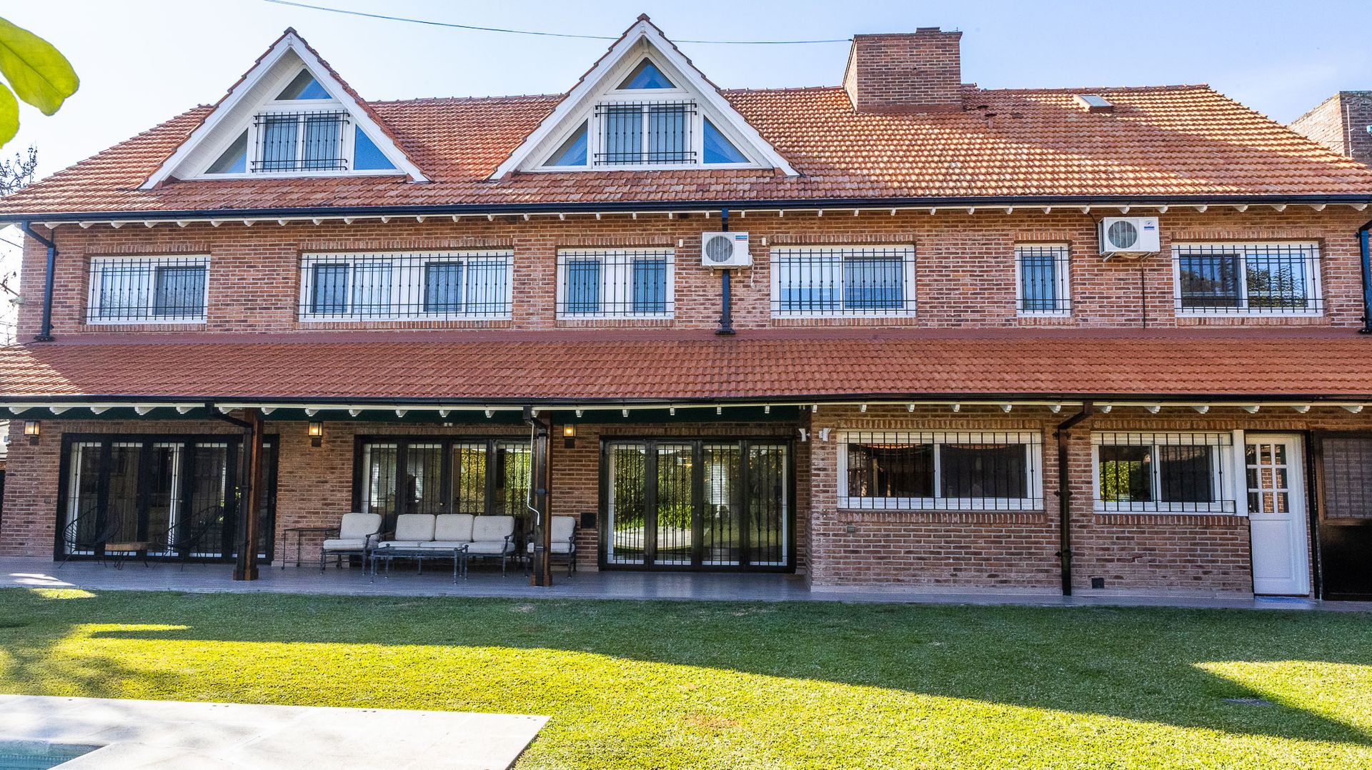 El exterior dispone de una galería amplia, parque con riego automático, piscina con filtro automático, quincho con parrilla a gas, baño completo y sector de guardado. Se incluyen instalaciones de alta prestación: aberturas con DVH instaladas en 2019, climatización central con equipo Fedders de aire frío/calor, termotanques de gran capacidad para agua caliente, grupo electrógeno GENERAC modelo QT27 KVA trifásico, portón de garaje automático de apertura a distancia, riego automático del parque, entrada independiente al jardín para servicio de piletero y jardinero, sector de bicicletero/motos bajo techo, cámaras inteligentes en accesos y exteriores, y cerco eléctrico perimetral de 7 hilos.