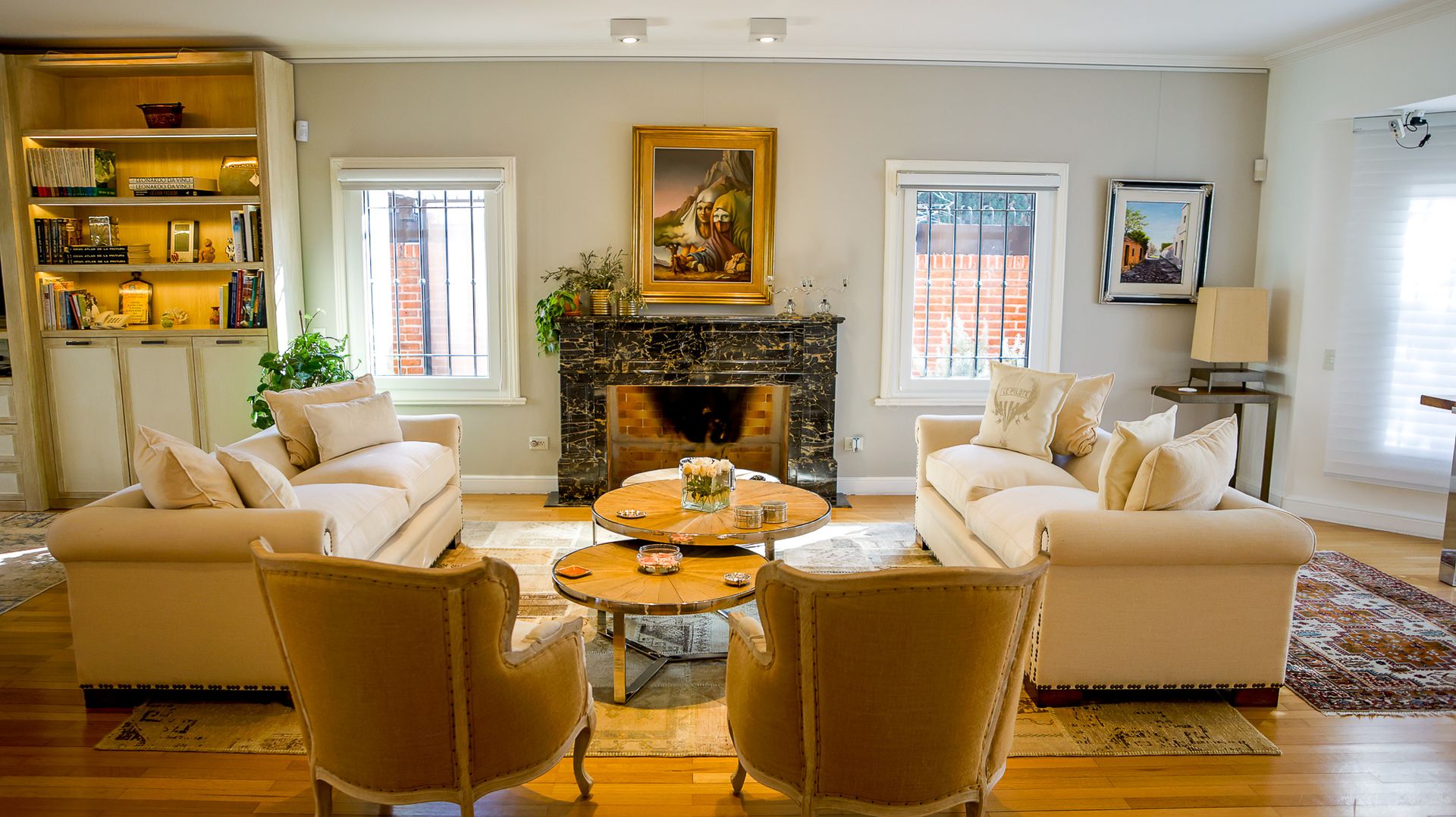 La vivienda cuenta con cuatro dormitorios en suite, dos estudios, una habitación de servicio con baño completo, y una galería amplia. El diseño combina estilo clásico con toques modernos, creando un ambiente elegante y acogedor. En la planta baja se encuentran una recepción con pisos de travertino pulido, dos living (uno con hogar a leña y otro dedicado a audio y video), comedor principal con vista al jardín, consultorio/estudio, cocina con equipamiento moderno y comedor diario separado, lavadero independiente, sector de guardado y una habitación de servicio. Un garaje cubierto para dos autos con portón automático y doble circulación facilitan el acceso a la planta alta.