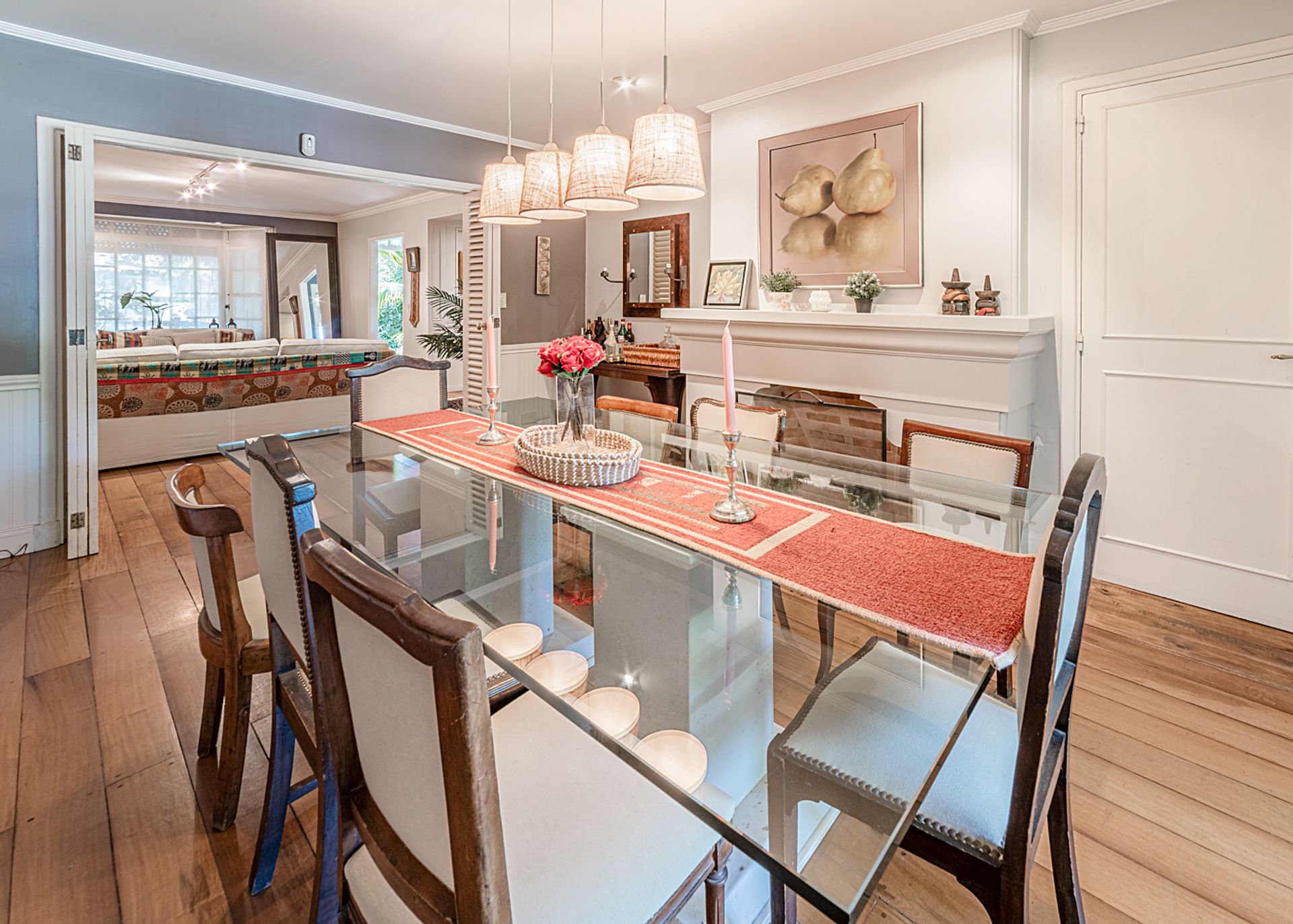 Hermoso chalet pensado para familias numerosas, con un diseño que combina comodidad y elegancia. El vestíbulo de recepción da la bienvenida a un amplio living y comedor con chimenea, creando un ambiente cálido y acogedor. Los pisos de tablones de pinotea aportan un toque rústico y sofisticado. La cocina comedor diario está equipada para la vida cotidiana, mientras que un lavadero separado facilita las tareas domésticas.