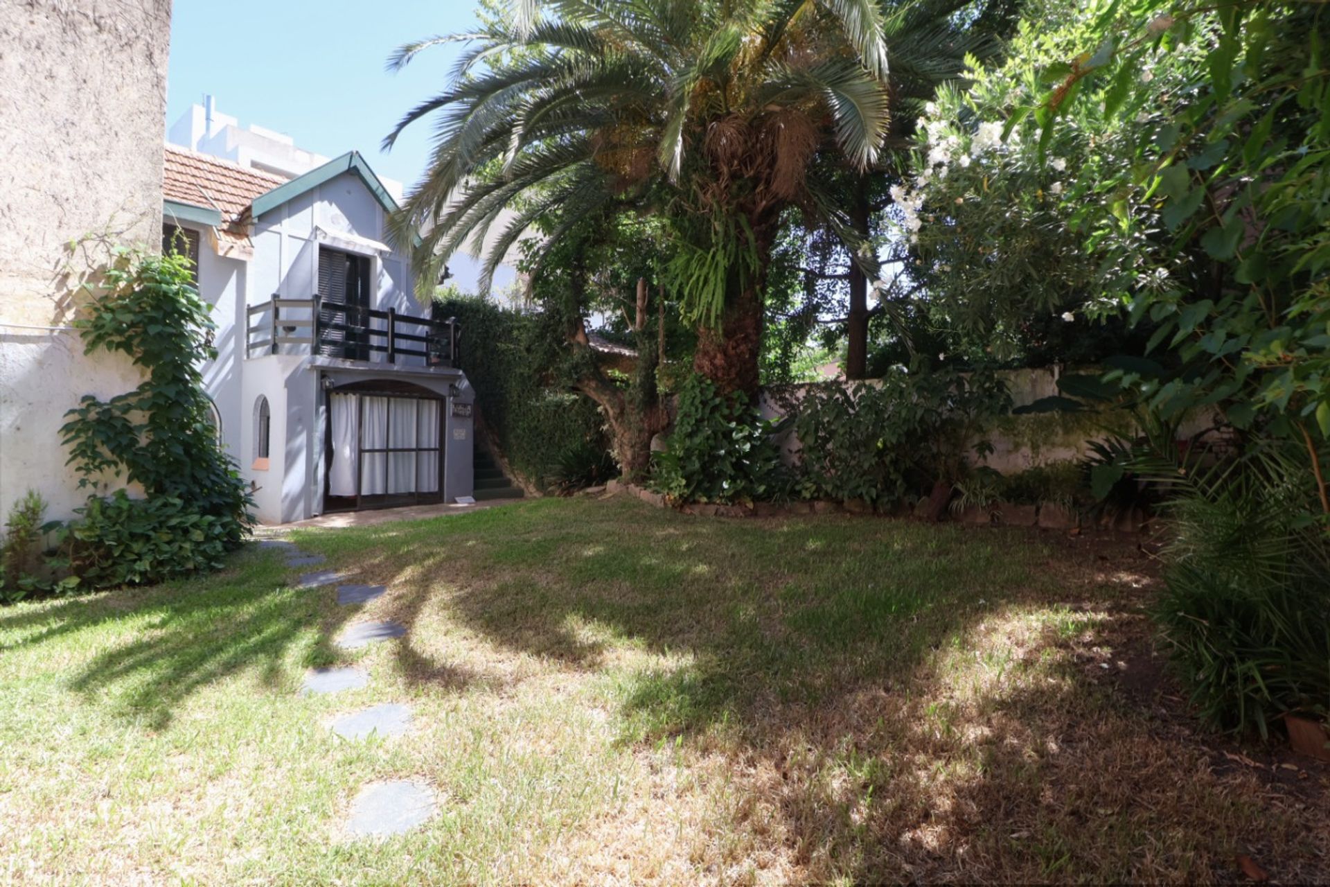 El conjunto cuenta con una construcción independiente al fondo del lote que incluye baño, ducha, quincho y una habitación a refaccionar. Un jardín natural rodea y jerarquiza la vivienda.