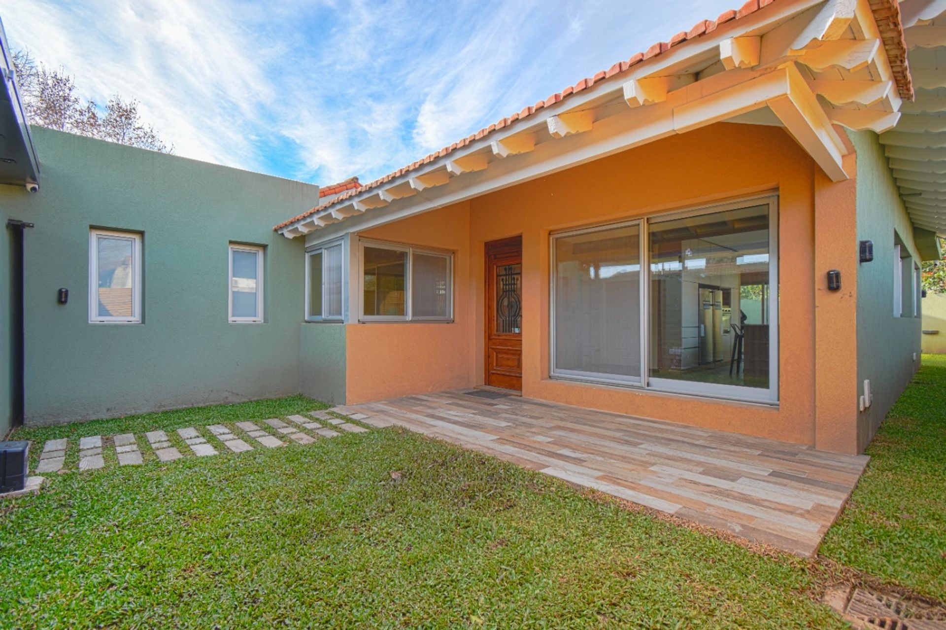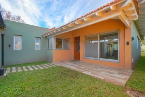 La cocina, equipada con horno eléctrico, anafe y heladera, complementa la funcionalidad del hogar. Delantera y trasera, los jardines se mantienen con riego por aspersión. Un espacio techado tipo quincho con parrilla invita a disfrutar de reuniones al aire libre, mientras que la terraza con deck y jacuzzi ofrece un refugio de relajación.
