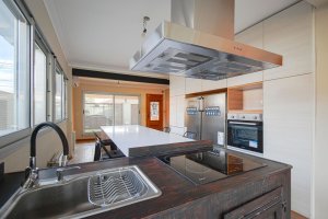 Aberturas de aluminio Aluar A30 anodizado con mosquitero, vidrios Vasa y 4 unidades de aire acondicionado Split Midea Inverter 3000FR FC. Caldera Peisa Dual y 3 radiadores. Puerta principal La Lucha de roble y puertas internas Caia Modelo Crafmaster. Pisos natural flooring Melamínina AC4 8 mm, pisos porchelanato. Alacenas, vestidores y placards de Cucina Mia. Mesada de cocina isla de silestone. Anafe eléctrico Candy con 4 hornallas, horno eléctrico Candy y heladera Frizzer Koinor Byside. Bacha de cocina con dispenser y secaplatos. Extractor purificador TST de acero inoxidable. Bomba de agua Rowa Max, tanque interno y riego automático 4 bocas con opción a ampliación. Espejos desempañador smart con luz LED, reloj, radio y lupa en baños y toilette. Dos cabinas de ducha escocesa Damplast, griferías de baño y cocina de alta calidad. Luminaria perimetral jardín, portón de entrada de hierro automático, portero visor IP video 2 MP, cámaras de seguridad Marchall y alarma Verisur 1080 p. Suministro eléctrico monofásico y trifásico, conexión de gas para cocina y generador, tomas para TV y video, luces para placares y luces combinadas en toda la casa.