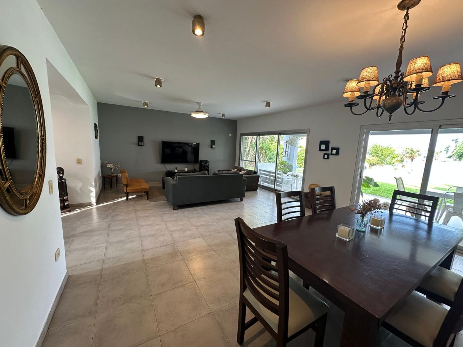 El exterior de la propiedad es un oasis de tranquilidad. Un jardín totalmente parquizado y con vegetación consolidada ofrece una vista abierta, complementado por una piscina que recibe sol pleno. Una galería cubierta con parrilla y un sector de living exterior permiten disfrutar de momentos al aire libre. Un muelle o bajada a la laguna facilita la práctica de deportes náuticos, kayak, paddle o simplemente la relajación frente al agua.