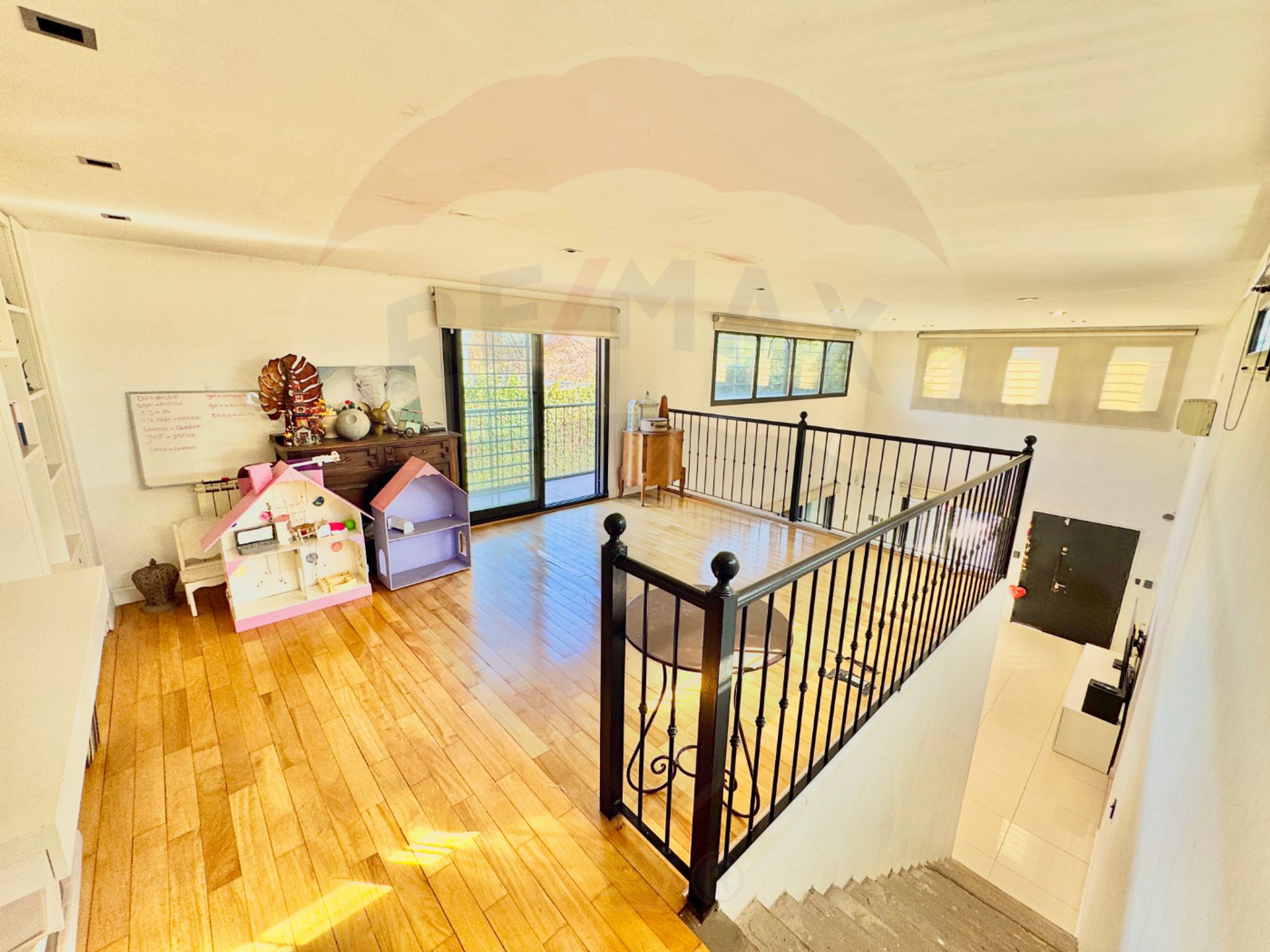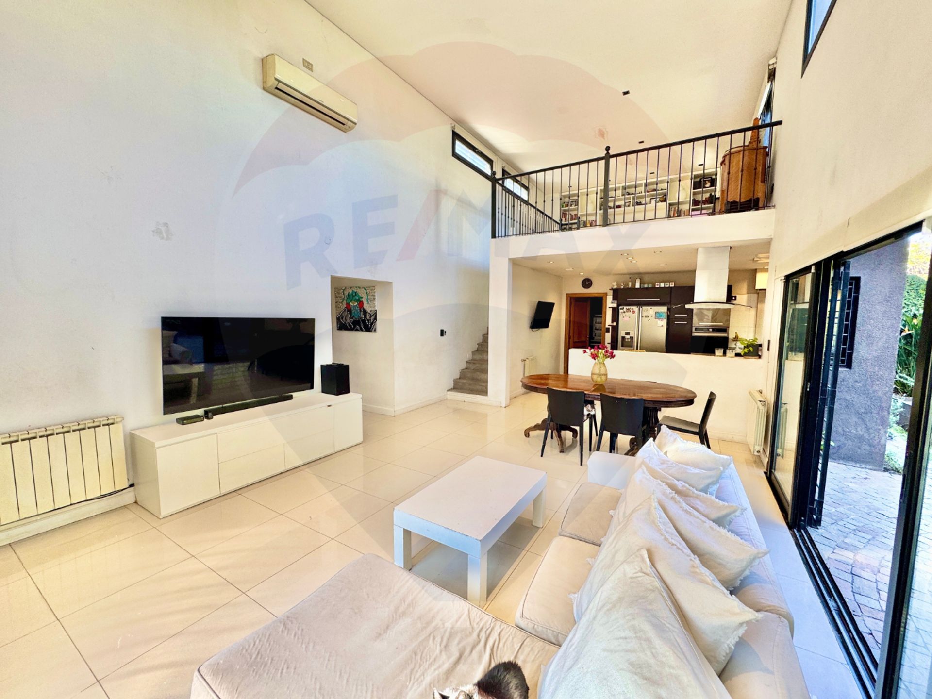 En la planta alta, sobre la cocina, se encuentra un gran espacio versátil, ideal para playroom, sala de estar u oficina, con salida a un balcón que da al patio interno y conecta con el quincho.