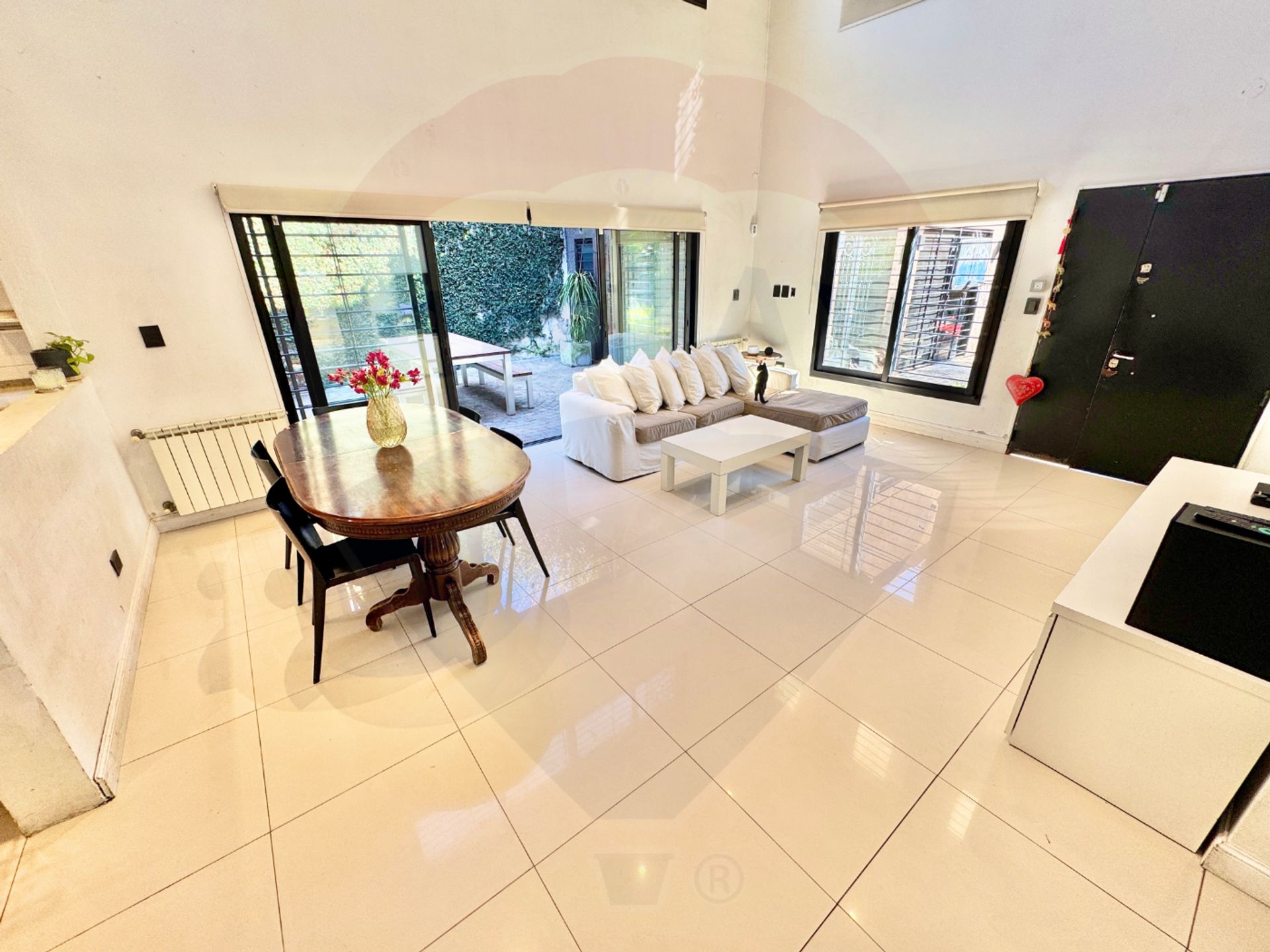 La vivienda se distingue por su luminosidad constante; el living-comedor cuenta con ventanales de doble altura que inundan el espacio de luz natural, mientras que la cocina integrada está completamente equipada y el lavadero independiente ofrece amplio espacio de almacenamiento.