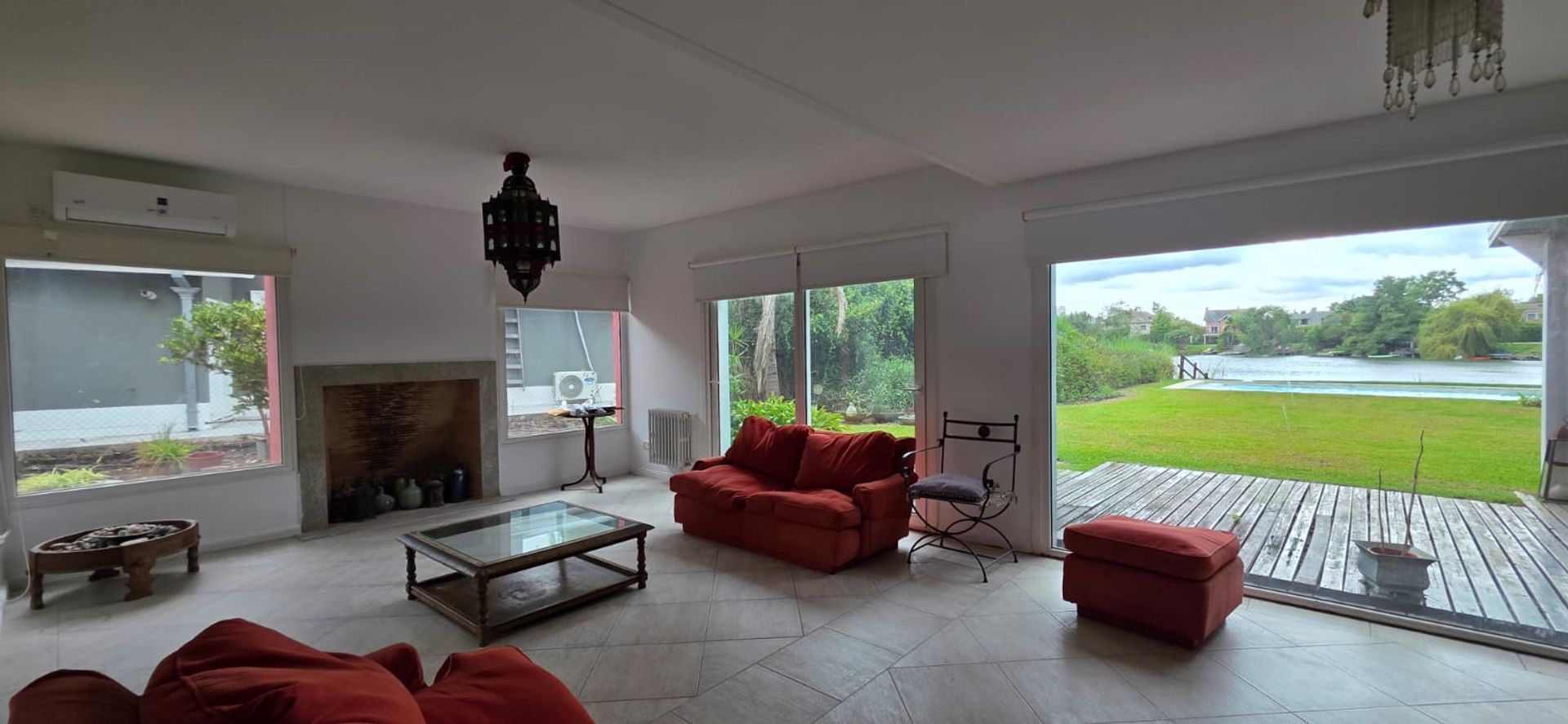 Las terminaciones son de alta calidad: aberturas de doble vidrio hermético, cortinas roller y excelente aislamiento térmico. El parquizado está en excelente estado, con cochera disponible y una pileta que permite acceso directo al muelle privado, ideal para navegación sin motor.