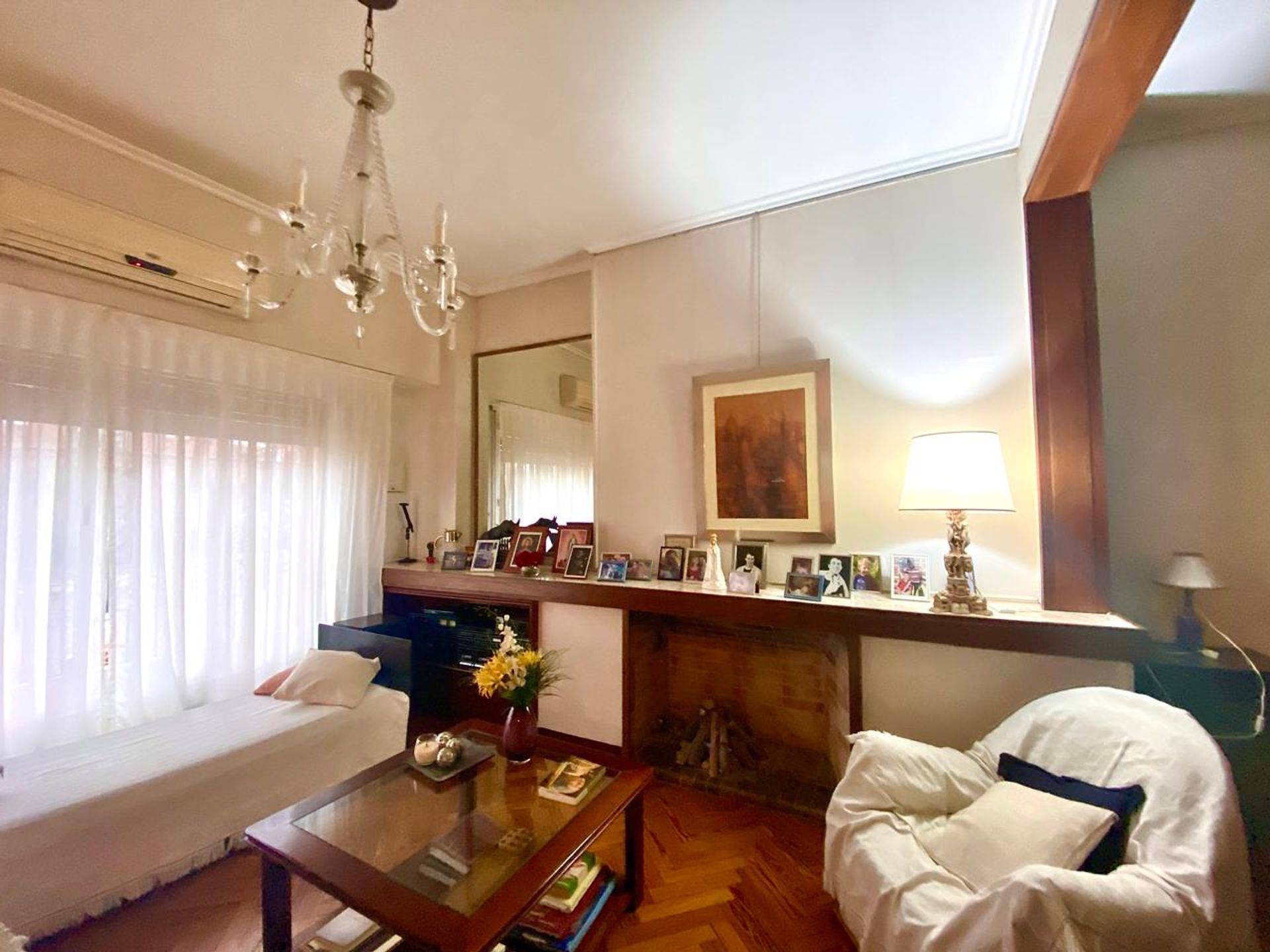 En la planta baja, la entrada se realiza por una puerta blindada que conduce a un amplio recibidor. A la izquierda se abre un gran living con una enorme ventana que permite una abundante luz natural; ambos espacios están terminados en piso de parket. En el mismo nivel se ubica un baño completo, ventilado y espacioso. Un cuarto se ha acondicionado como escritorio, con un ventanal que da al parque, ofreciendo luz natural y la vista del jardín. El techo está hecho de placas de madera, al igual que parte de las paredes, y el piso es parket. La cocina, con muebles de bajomesada y alacenas, es espaciosa y dispone de una mesa de comedor diario; una pared completa está dedicada a un placard empotrado de madera. Desde la cocina se accede al gran jardín.