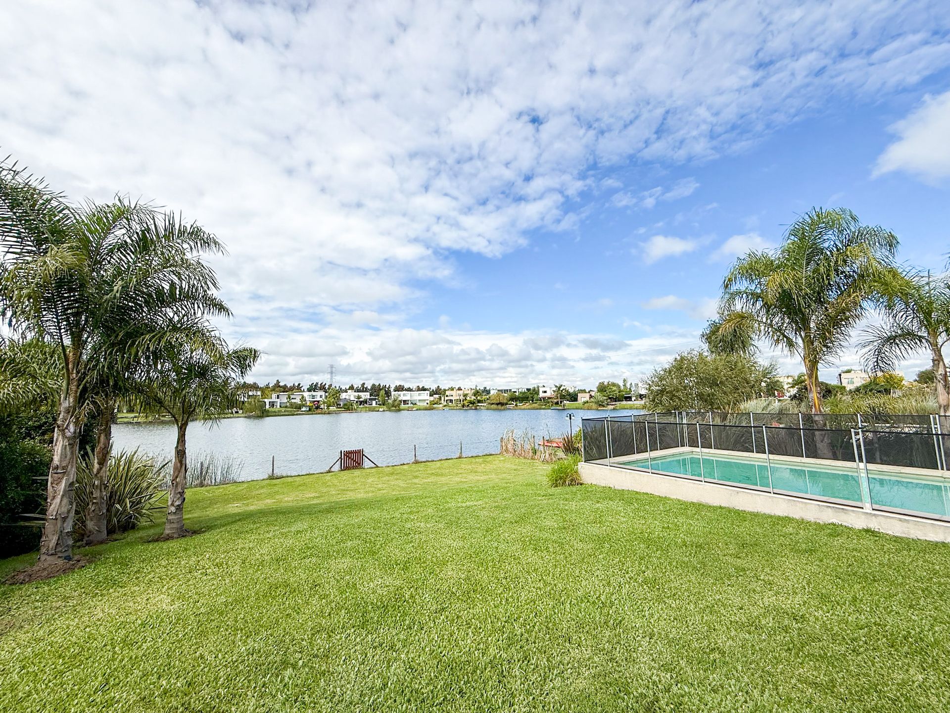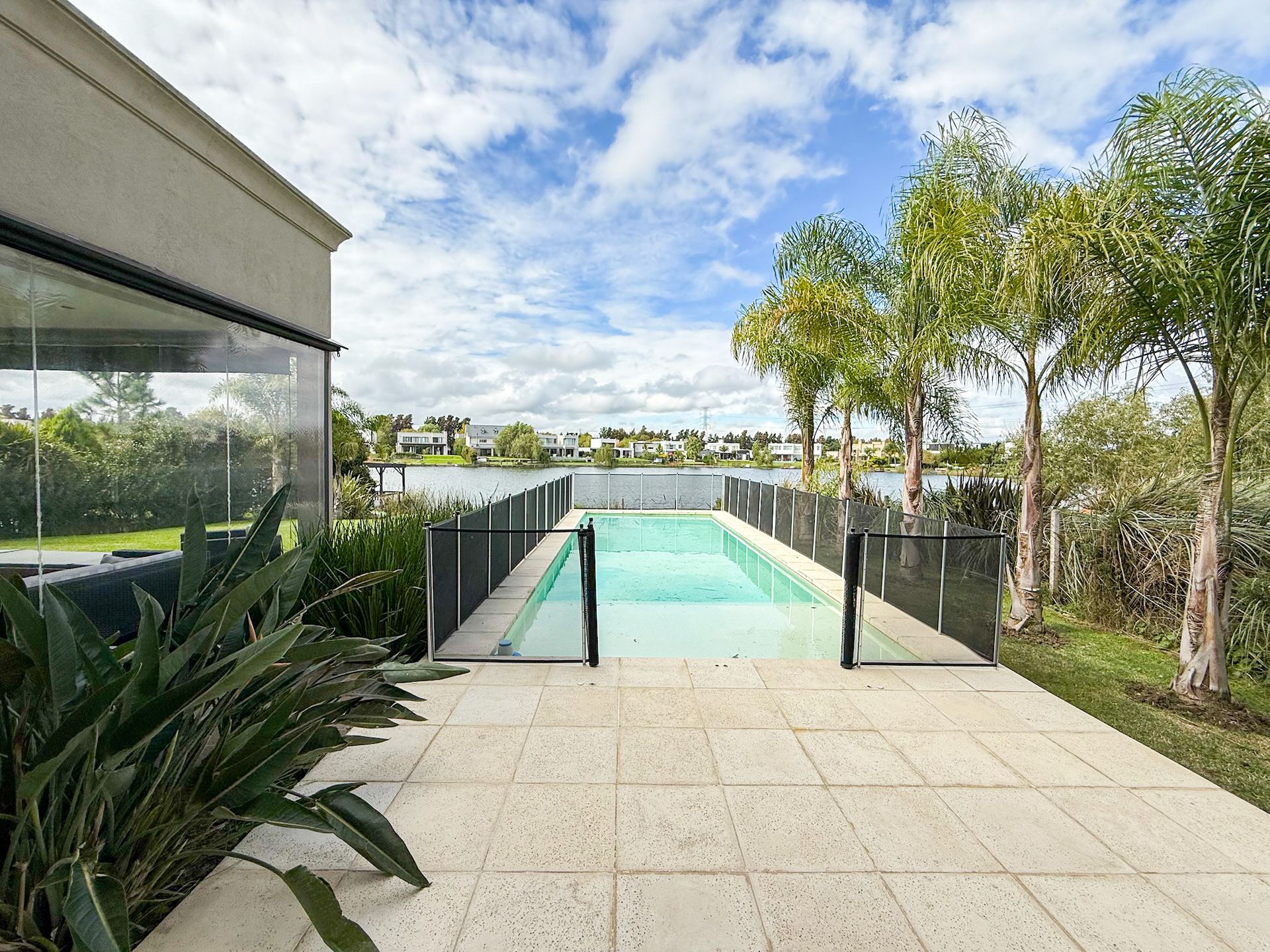 Al entrar, se abre un amplio y luminoso living que se abre a la laguna a través de grandes ventanales, creando un ambiente de paz y conexión con el entorno. La cocina, independiente del resto de los espacios, cuenta con una generosa barra desayunadora, perfecta para compartir momentos cotidianos en un entorno funcional y acogedor.