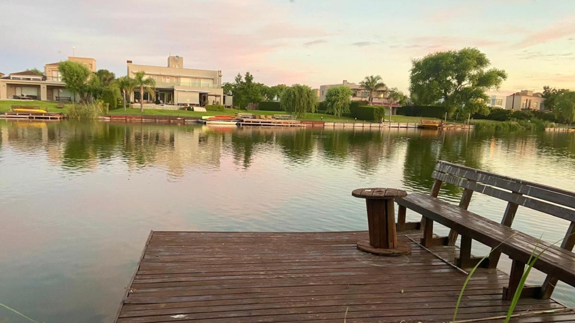 En el exterior, una gran galería doble con parrilla se convierte en el escenario perfecto para reuniones al aire libre. El jardín, parquizado y con pileta, culmina con un muelle privado sobre la laguna, creando un espacio ideal para actividades recreativas y relajación junto al agua.