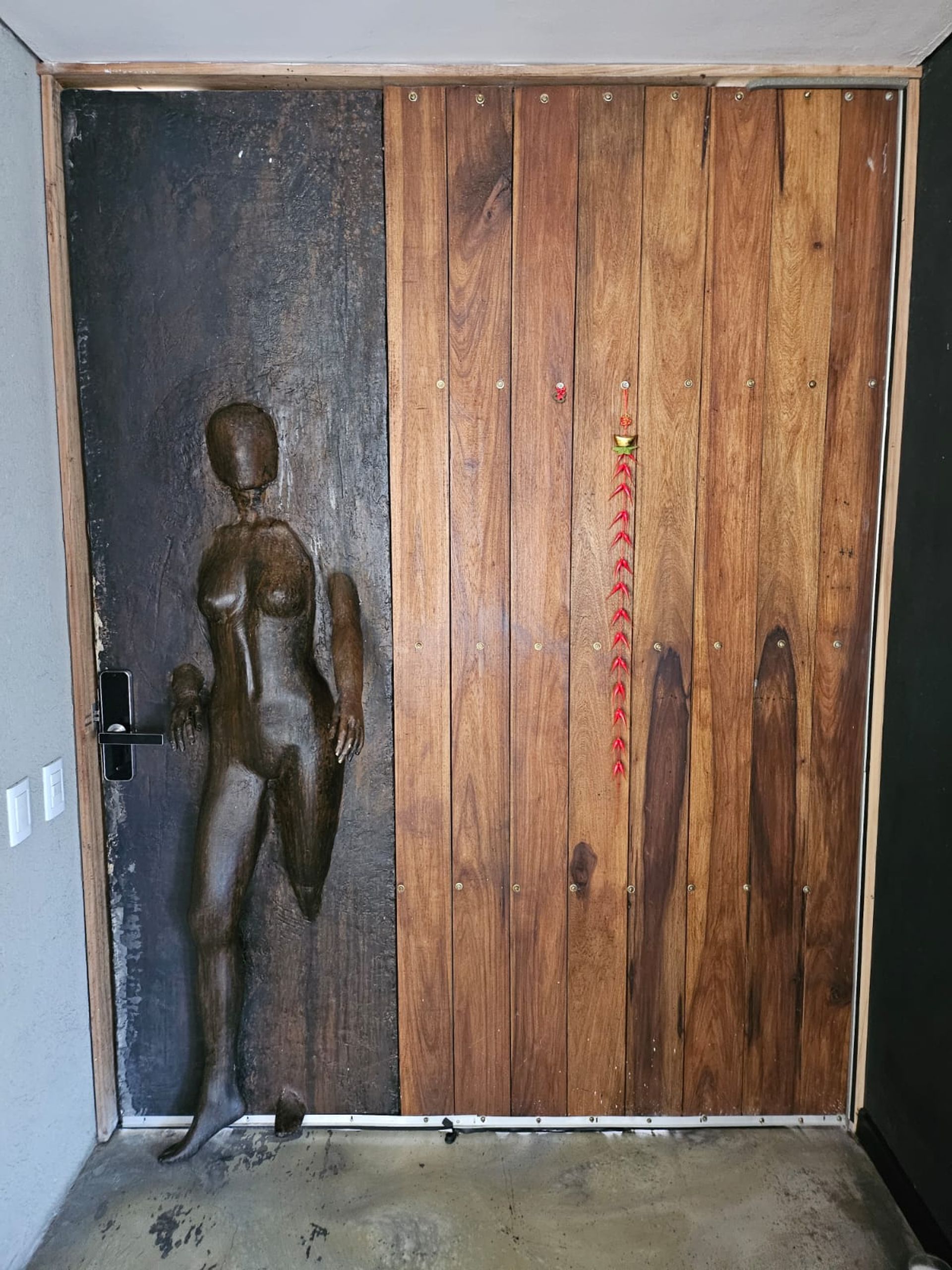 El oasis de relajación incluye una piscina climatizada interna, rodeada de un diseño temático que evoca un templo natural. Una majestuosa escultura de Ganesha, tallada en símil piedra y funcionando como fuente de agua, complementa la atmósfera serena. La iluminación LED de tonalidad variable crea un ambiente armonioso, ideal para el descanso y la meditación, junto con una puerta de madera con ventana tipo ojo de buey que aporta un toque místico y elegante.