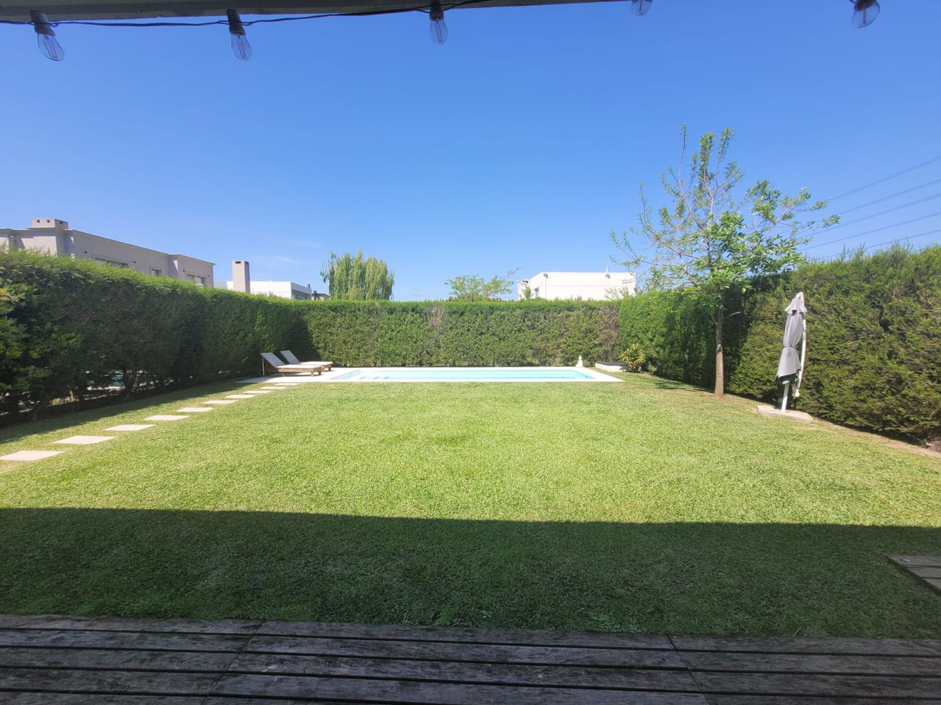 Casa moderna y luminosa ubicada en Barrios Las Tipas, Nordelta, Tigre (Lote 89). La propiedad se distingue por su gran jardín, galería y pileta, con orientación norte que permite que el sol inunde el espacio verde durante todo el día.