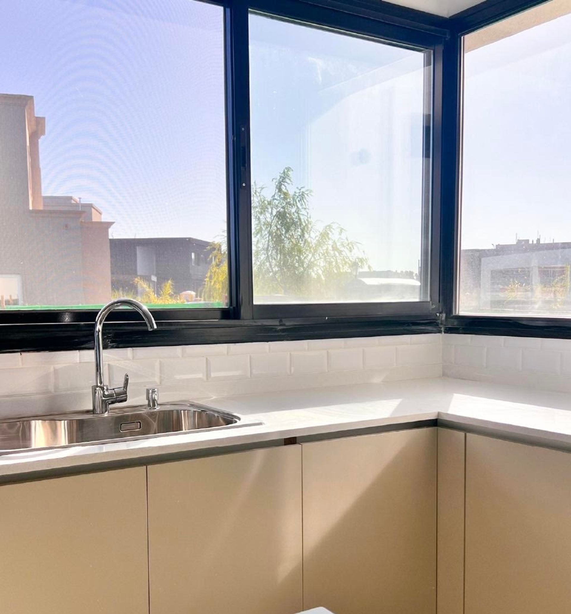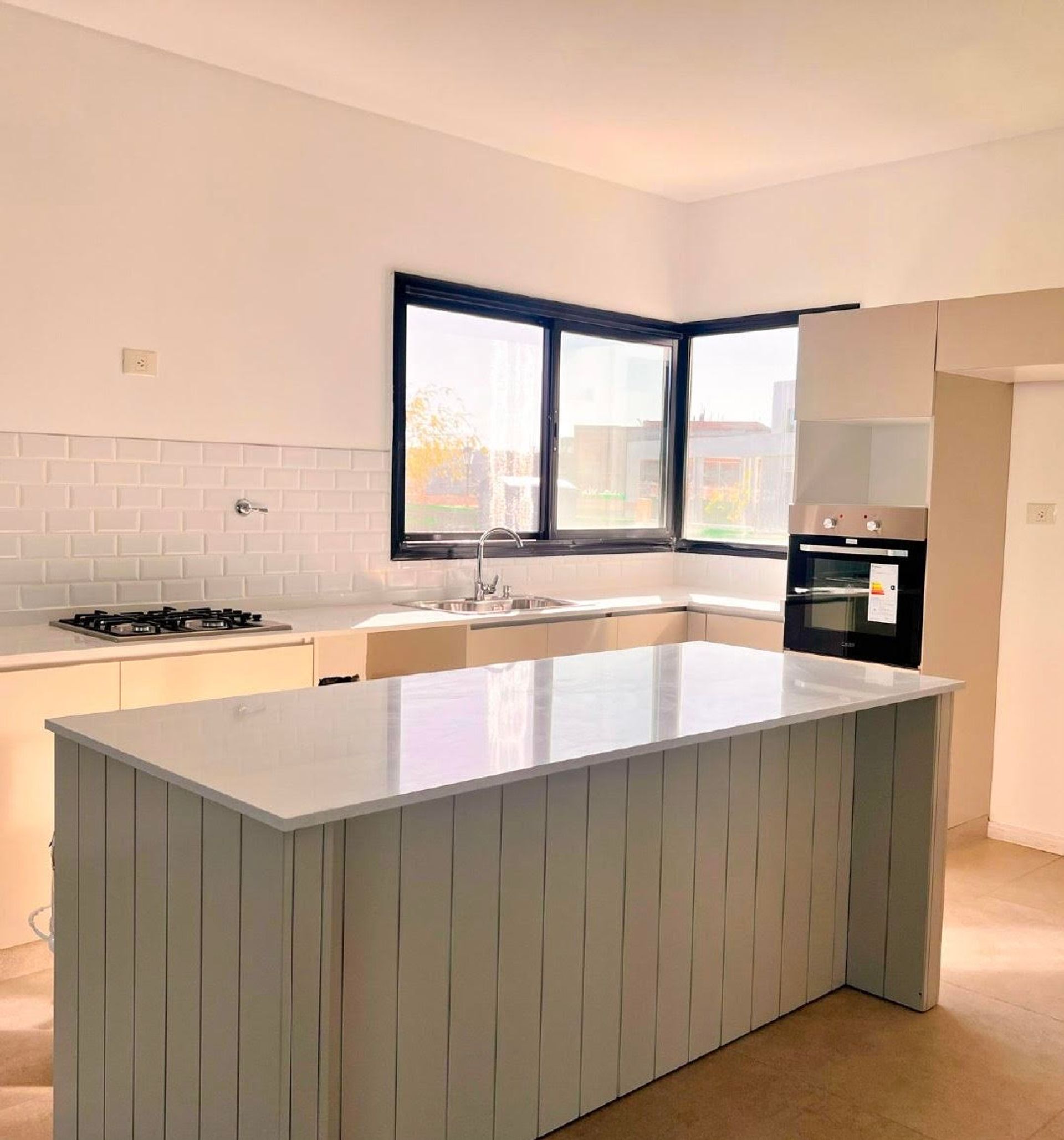 Calefacción por piso radiante con termostatos individuales en cada ambiente y sistema de agua caliente de alta recuperación. Dos cisternas de 1000 litros, bomba presurizadora. Materiales de alta calidad: griferías, sanitarios, termotanque, acabados en aluminio con vidrios de alta resistencia. Construcción tradicional sobre platea de hormigón armado, estructuras calculadas por estudio de ingeniería. Paredes interiores revestidas en yeso con molduras artesanales; paredes exteriores con revestimiento plástico. Techos de galería con chapa prepintada y madera a la vista. Techos de balcones y terrazas con membrana asfáltica y aislante térmico. Pisos de simil madera en living, comedor, pasillos y dormitorios; placas de porcelanato en baños y cocina. Cocina con isla en madera laqueada, mesadas en cuarzo blanco y blanco norte.