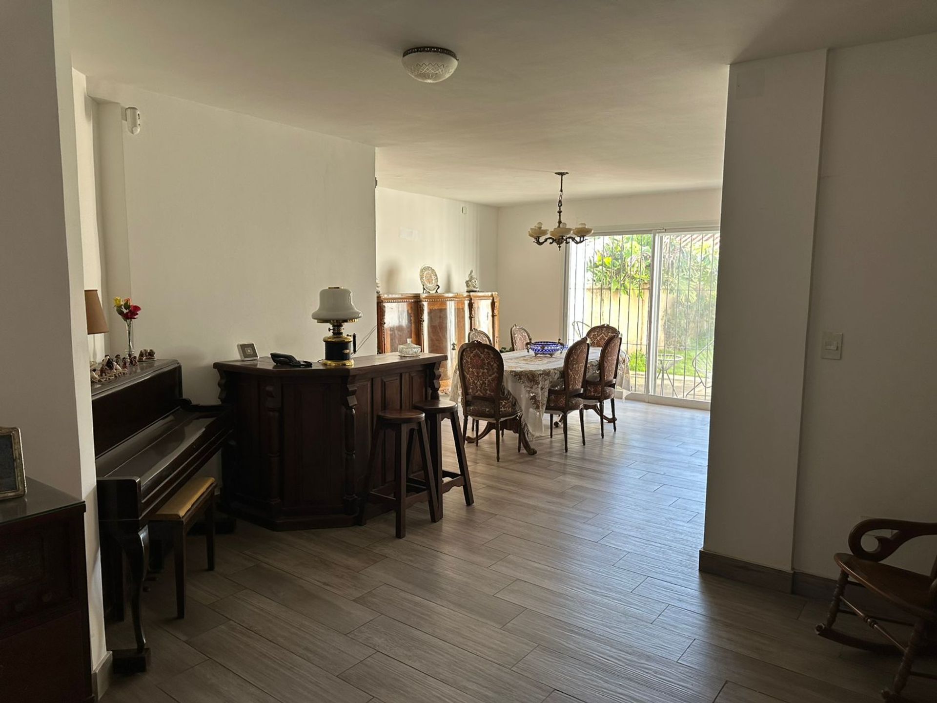 En la planta baja se abre un luminoso living‑comedor con pisos de porcelanato nuevos y salida directa al jardín. La cocina, totalmente reciclada, presenta tres mesadas de silestone, muebles altos de doble puerta, espacio para lavavajillas y acceso al patio exterior. El jardín, con césped natural, dispone de suficiente superficie para instalar una pileta y cuenta con quincho equipado con parrilla y lavadero, además de un toilette y un dormitorio o posible escritorio.