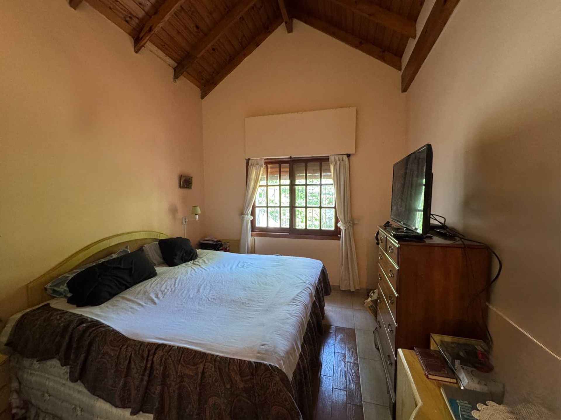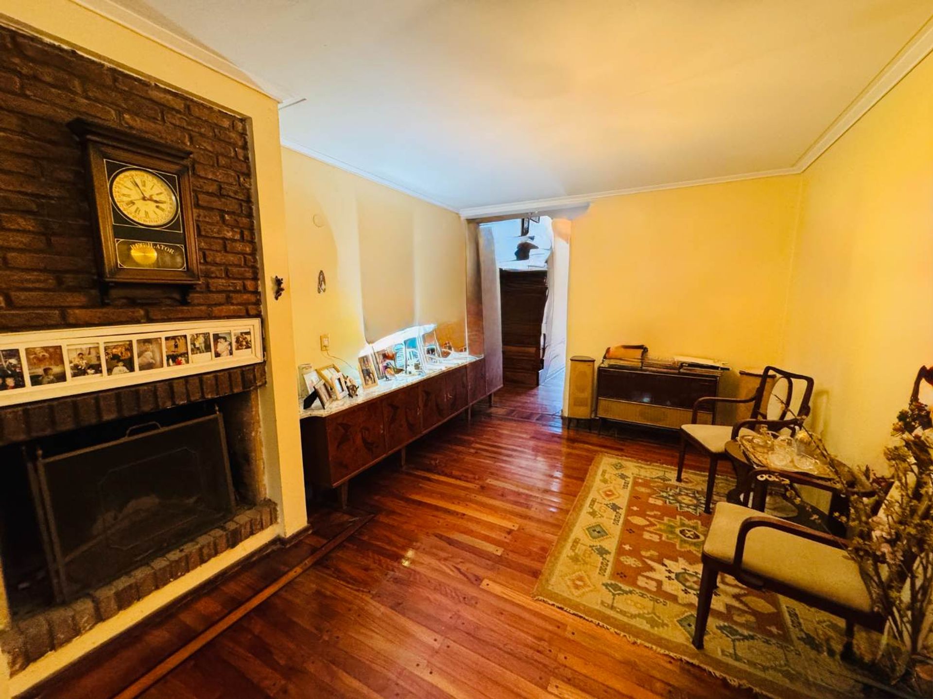 El living-comedor destaca por sus dos hogueras, una a gas y otra a leña, y por los pisos de madera tarugada en perfecto estado, creando un espacio acogedor y práctico.