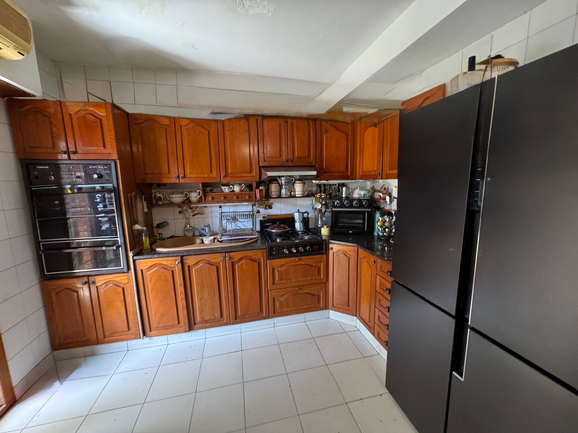 La cocina, amplia y con muebles completos, cuenta con barra y un área de comedor diario, ideal para la vida cotidiana y reuniones familiares.