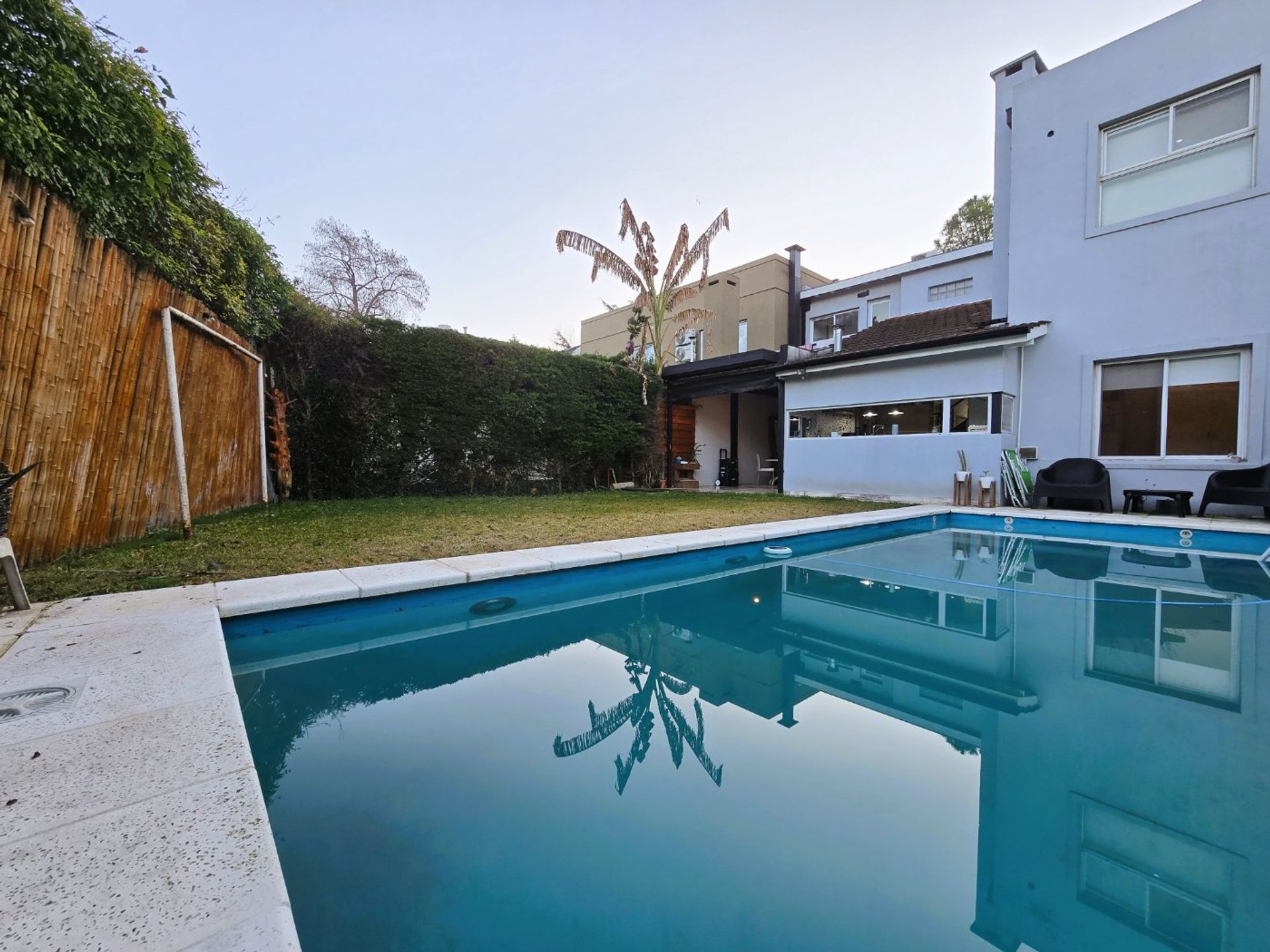 La propiedad dispone de lavadero independiente, jardín frontal, entrada de autos con cochera cubierta y descubierta. El jardín parquizado y la piscina brindan espacios ideales para la recreación al aire libre.