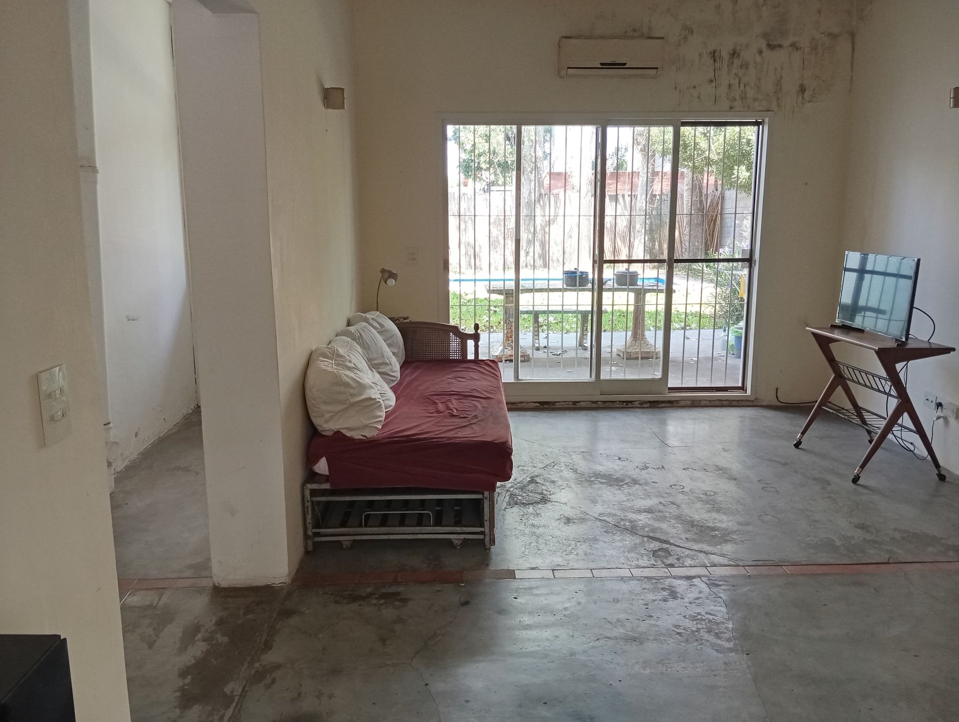 En la planta baja se encuentra una habitación que actualmente funciona como estudio/oficina, un baño completo con bañera y claraboya, un living con gran ventanal que da al patio trasero, una cocina con espacio para comedor y salida al mismo patio, y un amplio jardín trasero con pileta, lavadero y espacio ideal para reuniones familiares o con amigos. La escalera se ilumina con ventanales que permiten la entrada de luz natural.