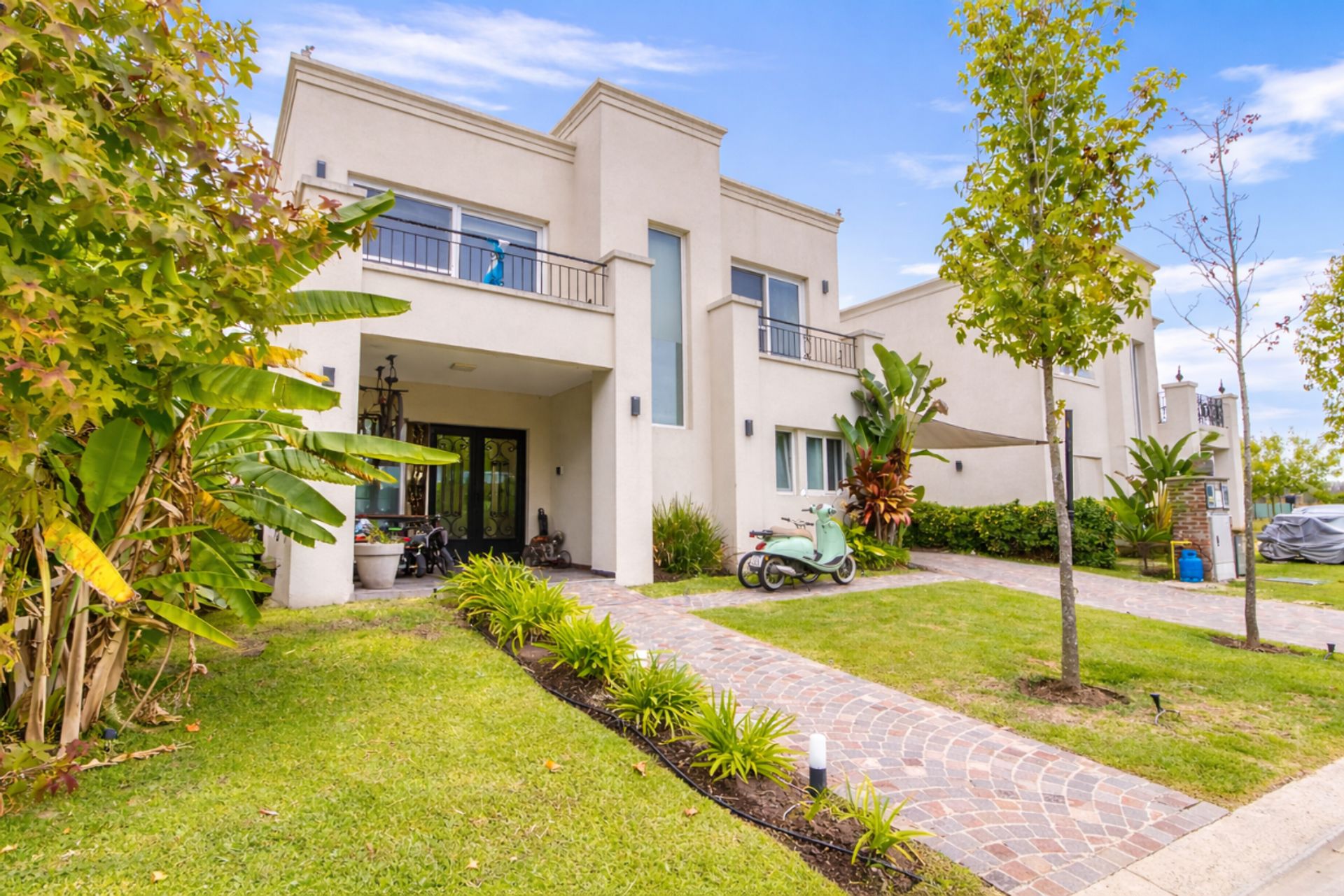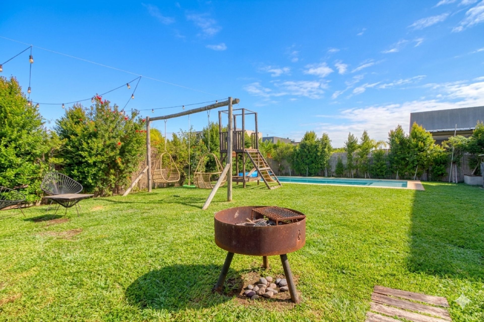 El exterior se caracteriza por un jardín parquizado con grama y un sistema de riego automático domotizado que garantiza un mantenimiento sencillo y eficiente. La pileta climatizada, revestida en venecitas blancas, cuenta con bomba de calor y está acompañada de una iluminación exterior domotizada que realza su estética durante la noche. La casa dispone de una galería cerrada con vidrio templado rebatible, perfecta para disfrutar del paisaje sin perder la seguridad. Además, se incluyen parrilla y horno a leña, ideales para reuniones familiares y eventos al aire libre.