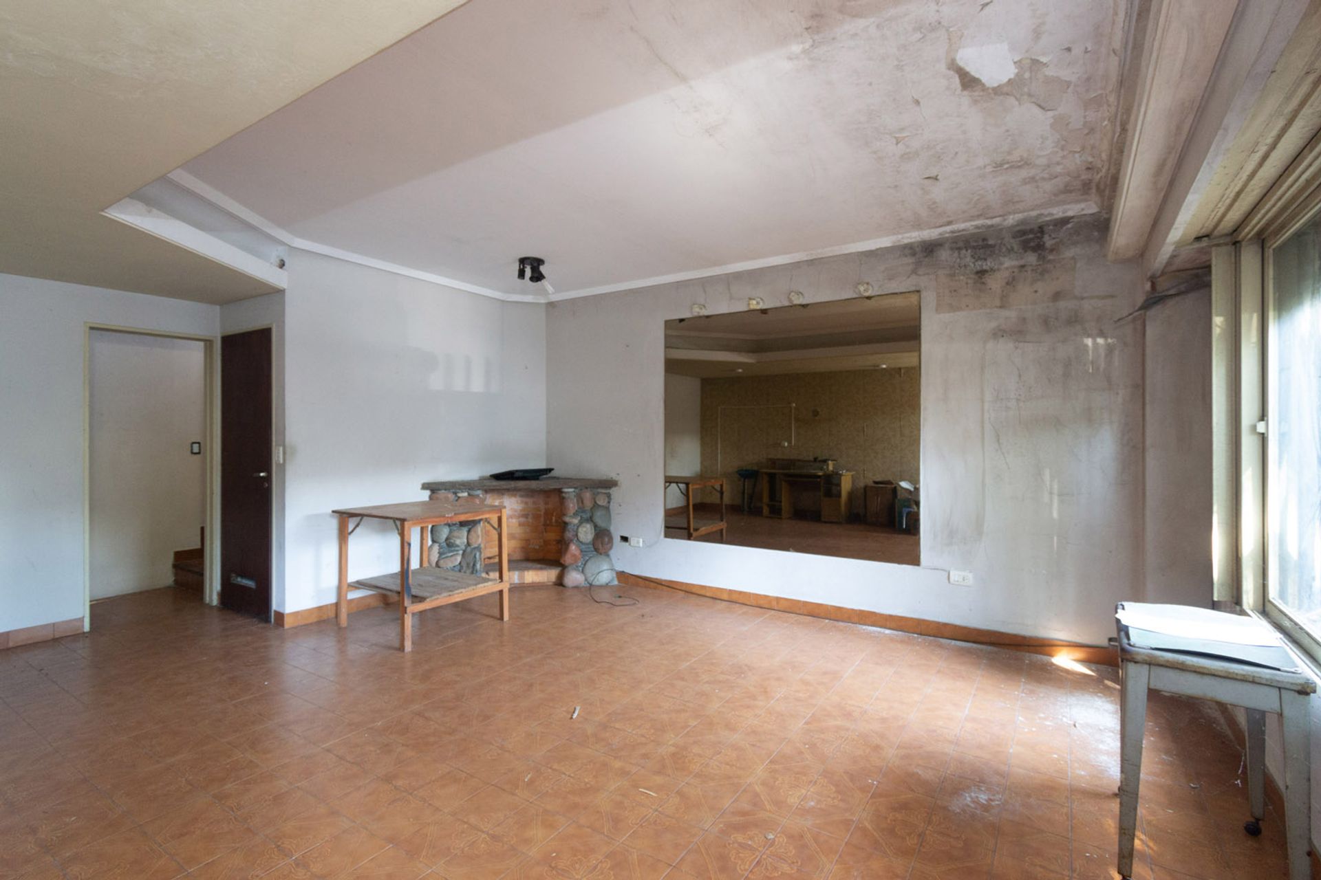 El exterior ofrece una cochera doble semicubierta, jardín y el galpón de aproximadamente 100 m² al fondo del lote. Propiedad a refaccionar con gran potencial para modernizar y adaptar según las necesidades del comprador.