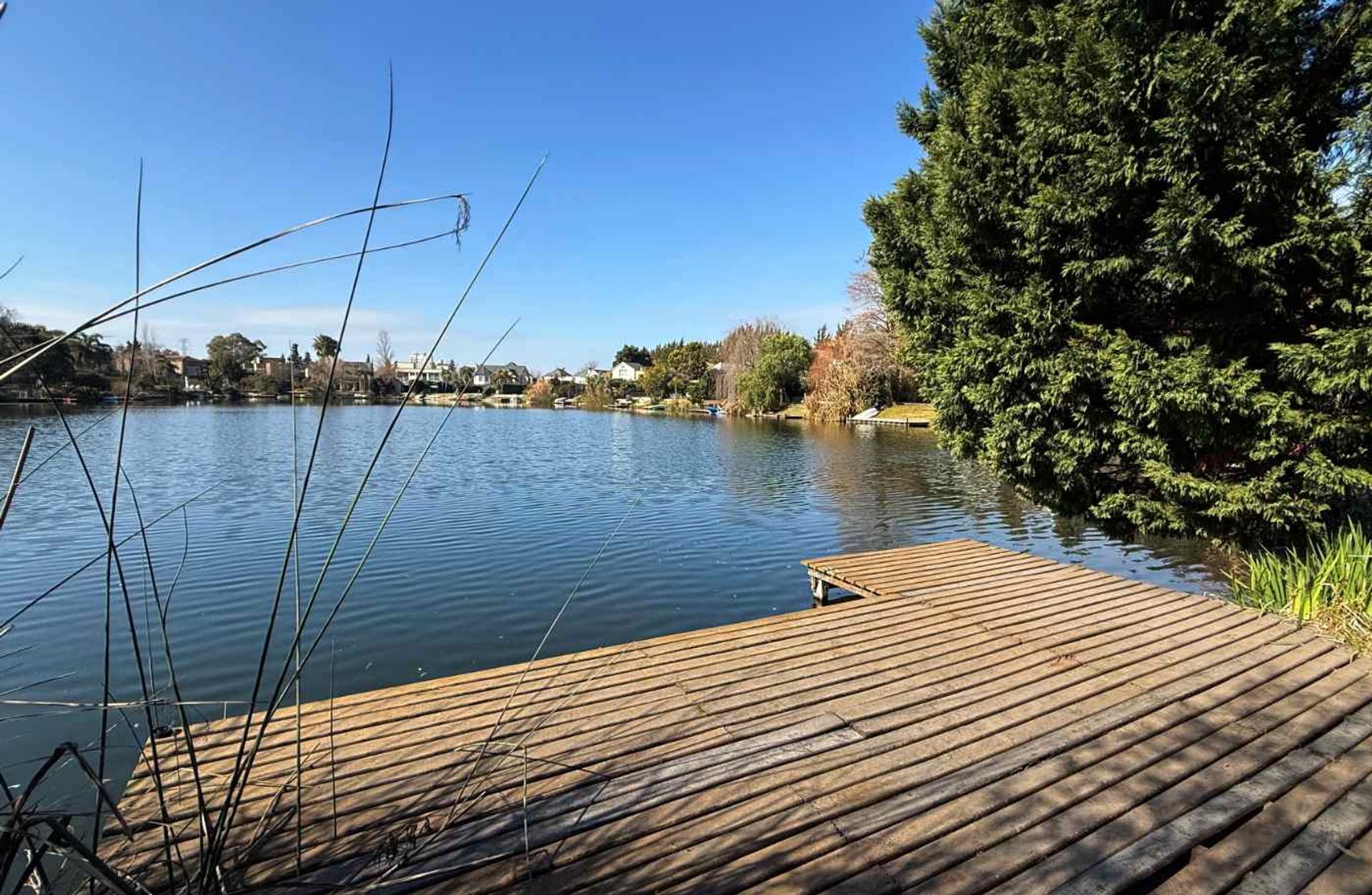 El exterior incluye una galería con parrilla de acero inoxidable, jardín parquizado, piscina y deck con muelle frente a la laguna. La cochera acoge hasta cuatro vehículos y la vivienda cuenta con calefacción por losa radiante y ventanas de doble acristalamiento.