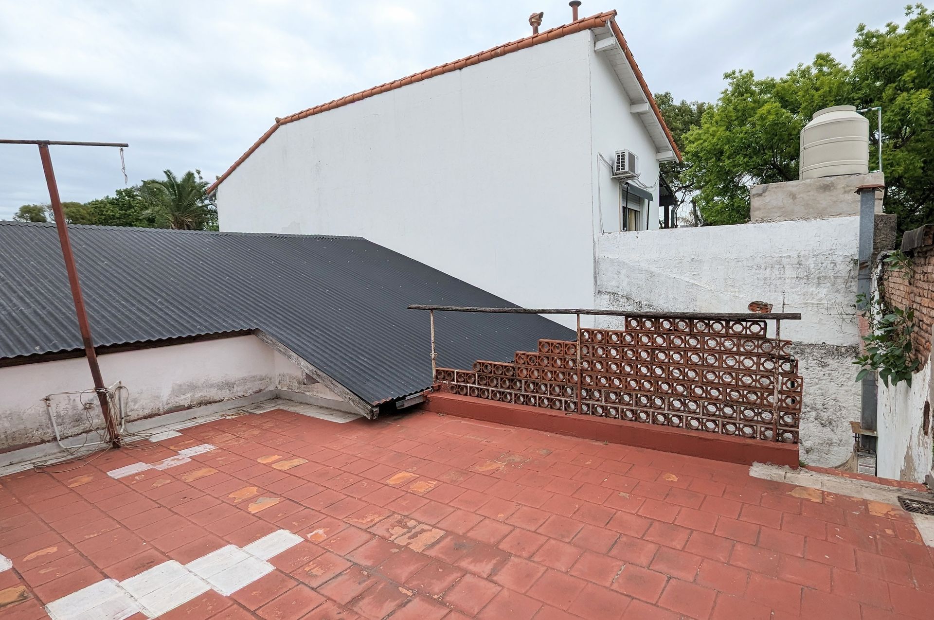 La distribución incluye un acceso a estar‑comedor con hogar, dos dormitorios con placard y baño completo. La cocina, amplia y reciclada, dispone de un espacio flexible que puede funcionar como escritorio, playroom o dormitorio adicional, y cuenta con baño completo propio. Desde la cocina se abre al patio, donde se encuentra una zona de parrilla y lavadero, y una escalera que conduce a la terraza accesible, ideal para ampliar o crear un espacio exterior adicional. Un pasillo lateral brinda acceso directo al patio.