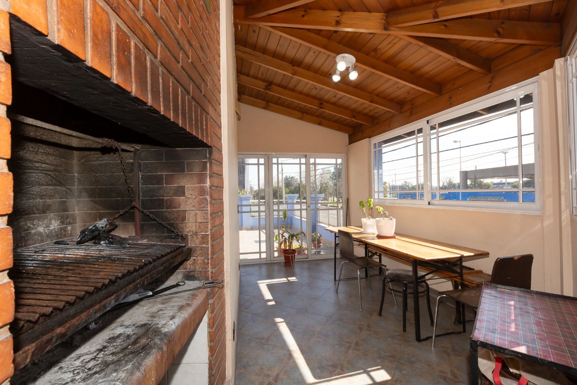 Casa de 7 ambientes con garage techado que admite dos vehículos en la planta baja y una zona de 4 ambientes en la planta alta con balcón corrido, quincho, parrilla y dos terrazas.