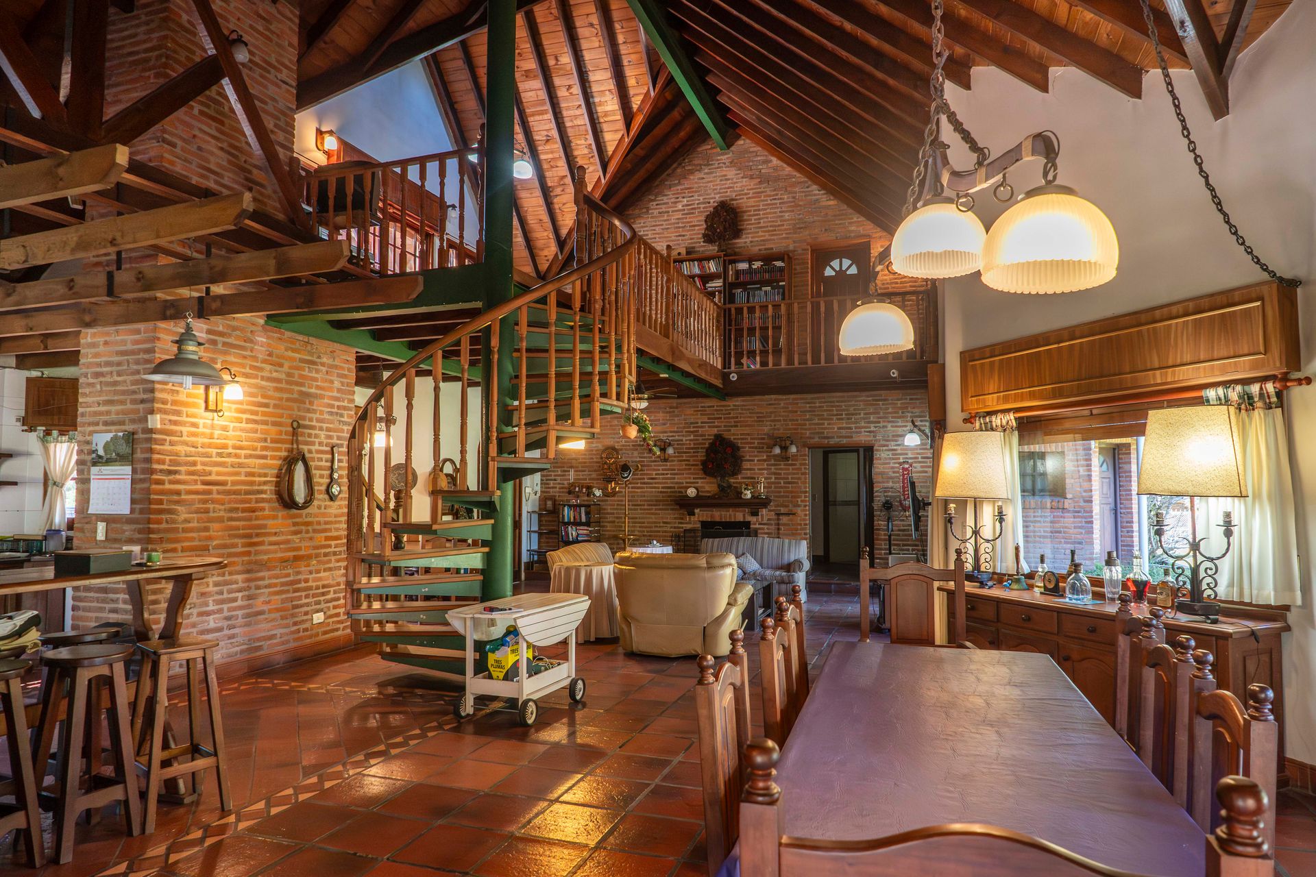 Entre sus características destacadas se encuentran el amplio lote de 4.200 m², la galería techada en “L” con parrilla de 60 m² y toldos, la piscina con solárium rodeada de vegetación, el espacio de guardado y la cochera cubierta para tres autos.