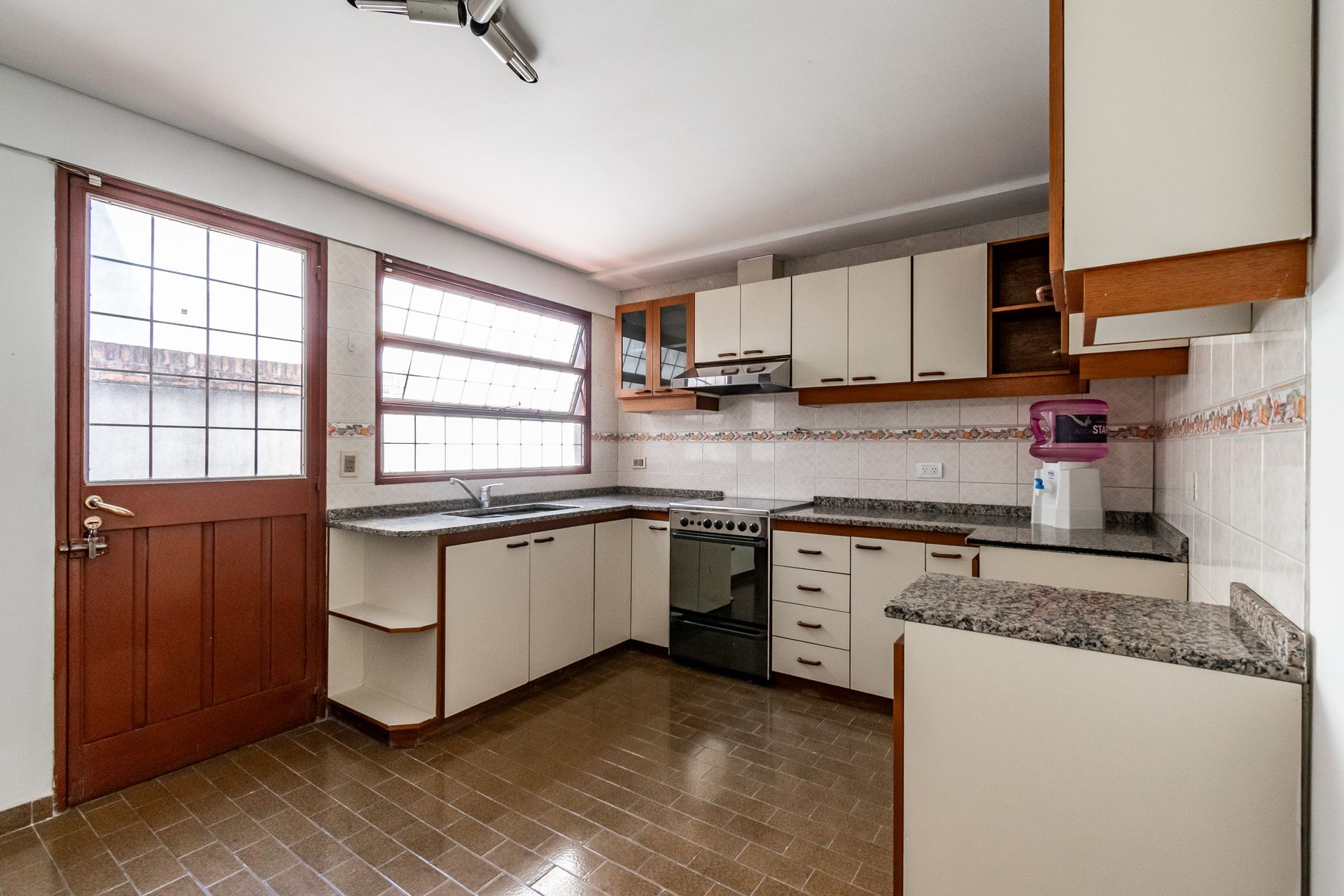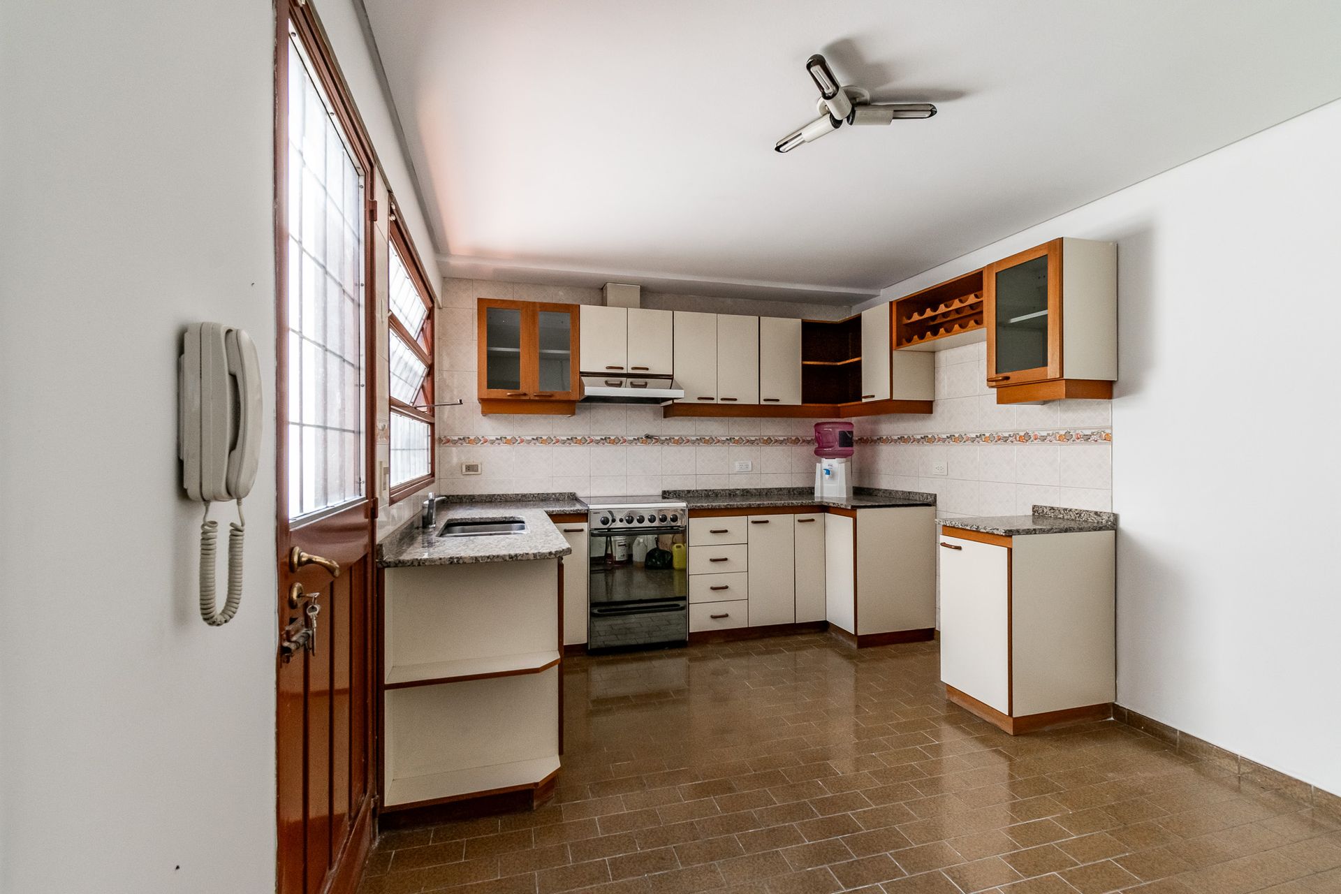 La planta baja ofrece un amplio living comedor con ventanales que inundan el espacio de luz natural. La cocina, completamente equipada, cuenta con alacena, bajo mesada y un área pensada para el comedor diario. En el mismo nivel se ubica un toilette de recepción, un patio privado y un garage amplio que acomoda un automóvil o una camioneta.