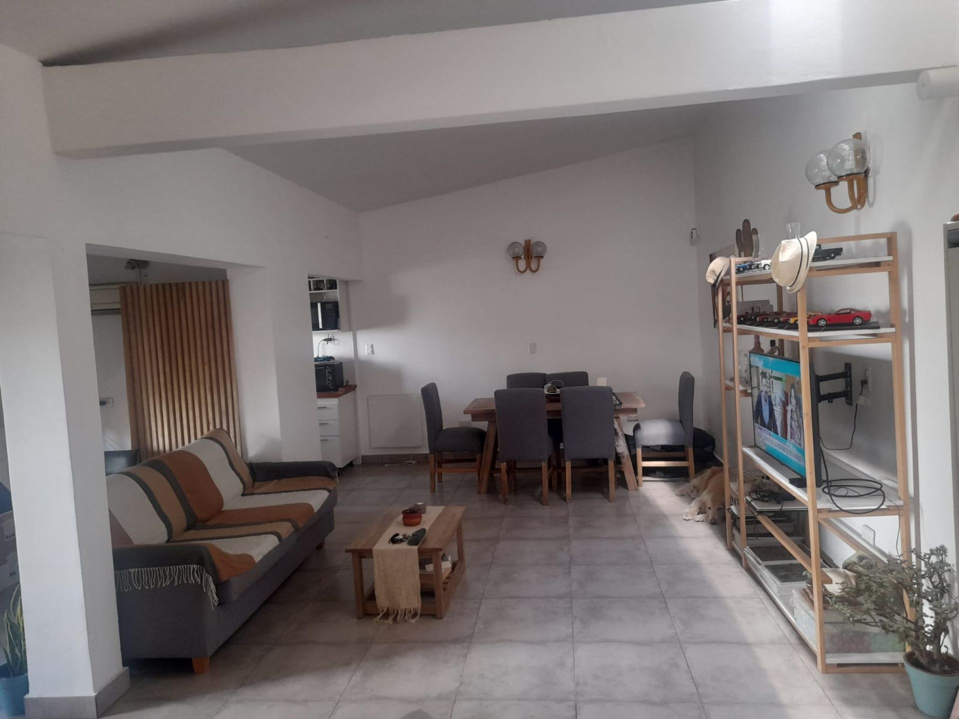 Casa de estilo moderno y funcional, con un amplio espacio único que integra comedero, cocina, living y dormitorio en una distribución armoniosa. El diseño maximiza la entrada de luz natural gracias a un tragaluz y grandes ventanales en el living y la cocina, creando un ambiente luminoso y cómodo. Los pisos de cerámica aportan elegancia y facilidad de mantenimiento, mientras que la posibilidad de dividir el espacio permite adaptar la vivienda a diferentes necesidades.
