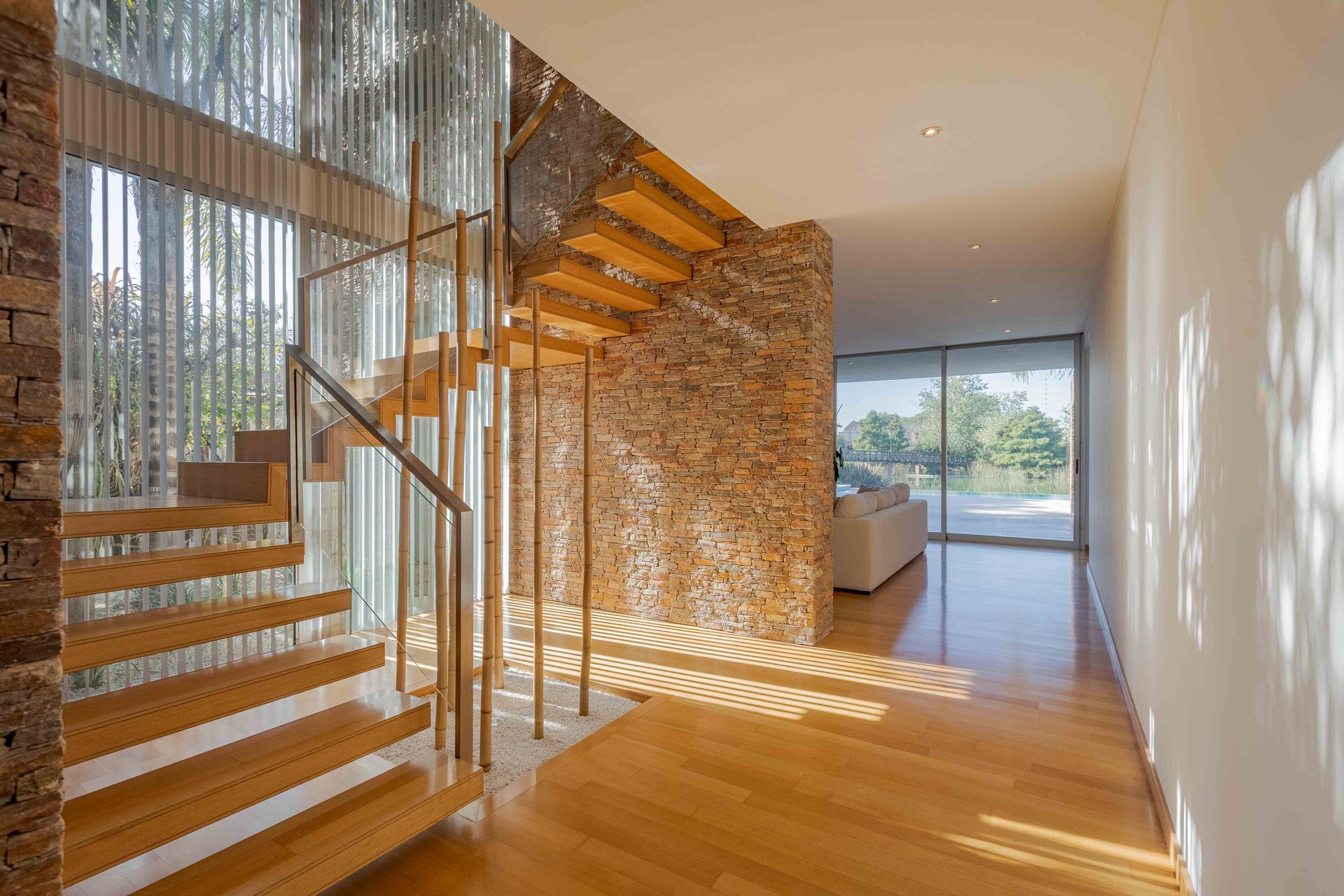 La construcción refleja calidad superior: estructura de hormigón, mampostería de ladrillos huecos para una excelente aislación térmica y acústica, y acabados en yeso. Los pisos de madera de roble en la planta alta y porcelanato en áreas húmedas aportan elegancia y durabilidad. Las carpinterías de aluminio anodizado con DVH y las puertas interiores de madera de wengue complementan el estilo contemporáneo. La instalación eléctrica, sanitaria y de climatización se basa en materiales y artefactos de primera línea.