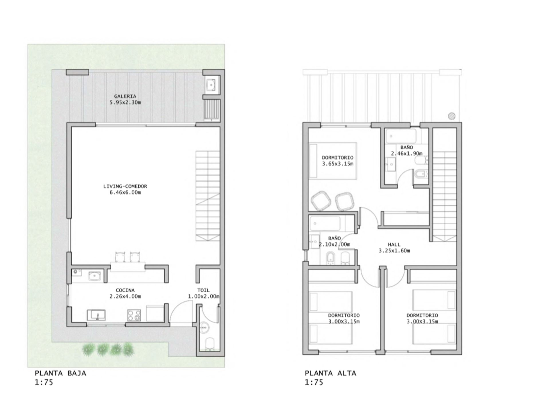 Casa de tres ambientes en dos plantas, ubicada en la zona de Benavidez, Buenos Aires. Con una superficie construida de 130 m², la vivienda cuenta con cinco espacios interiores distribuidos en tres dormitorios, dos baños completos y un toilette. El estacionamiento privado permite la guardia de dos vehículos, complementado con espacios comunes amplios que incluyen cocina completa y living comedor con vista al patio.