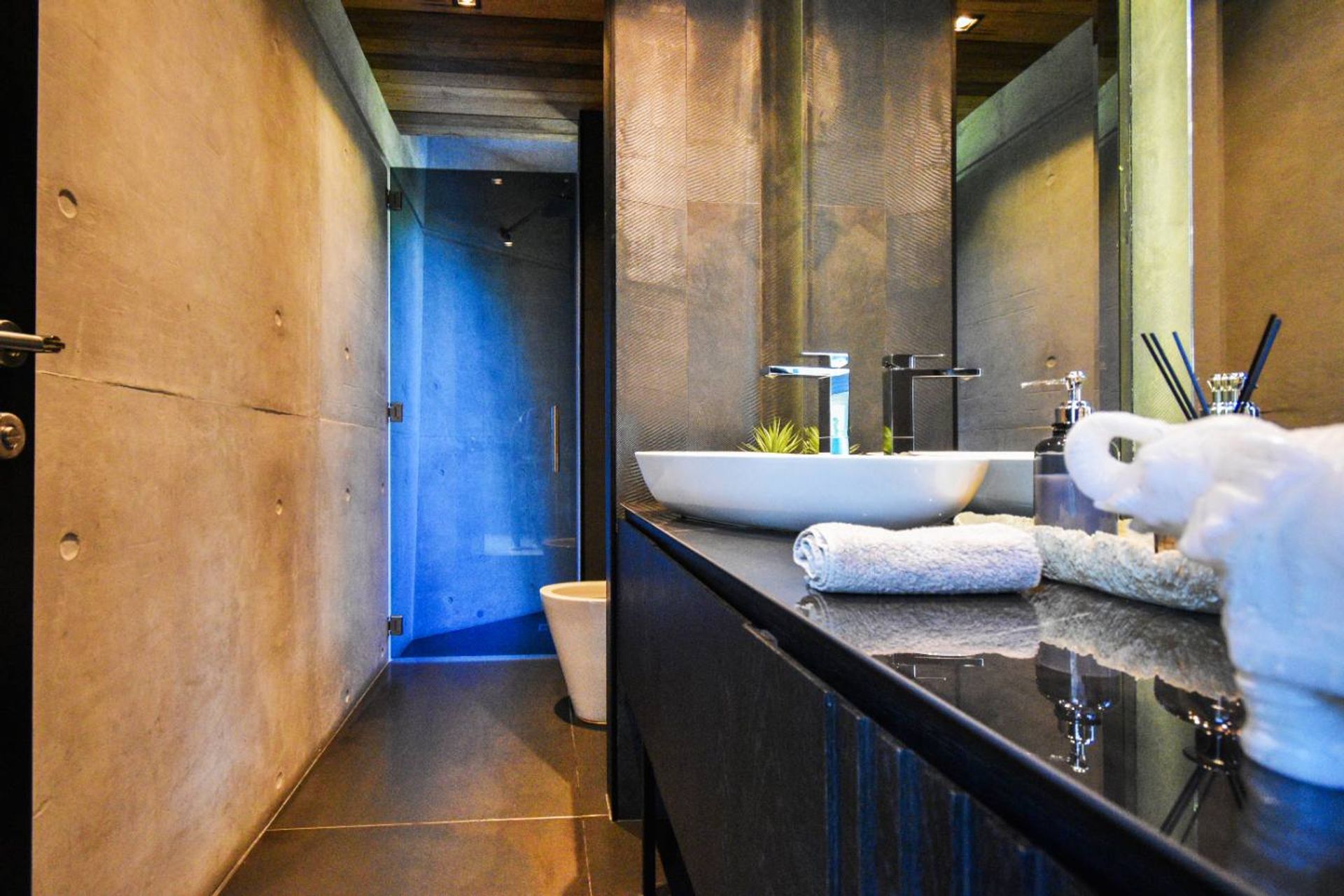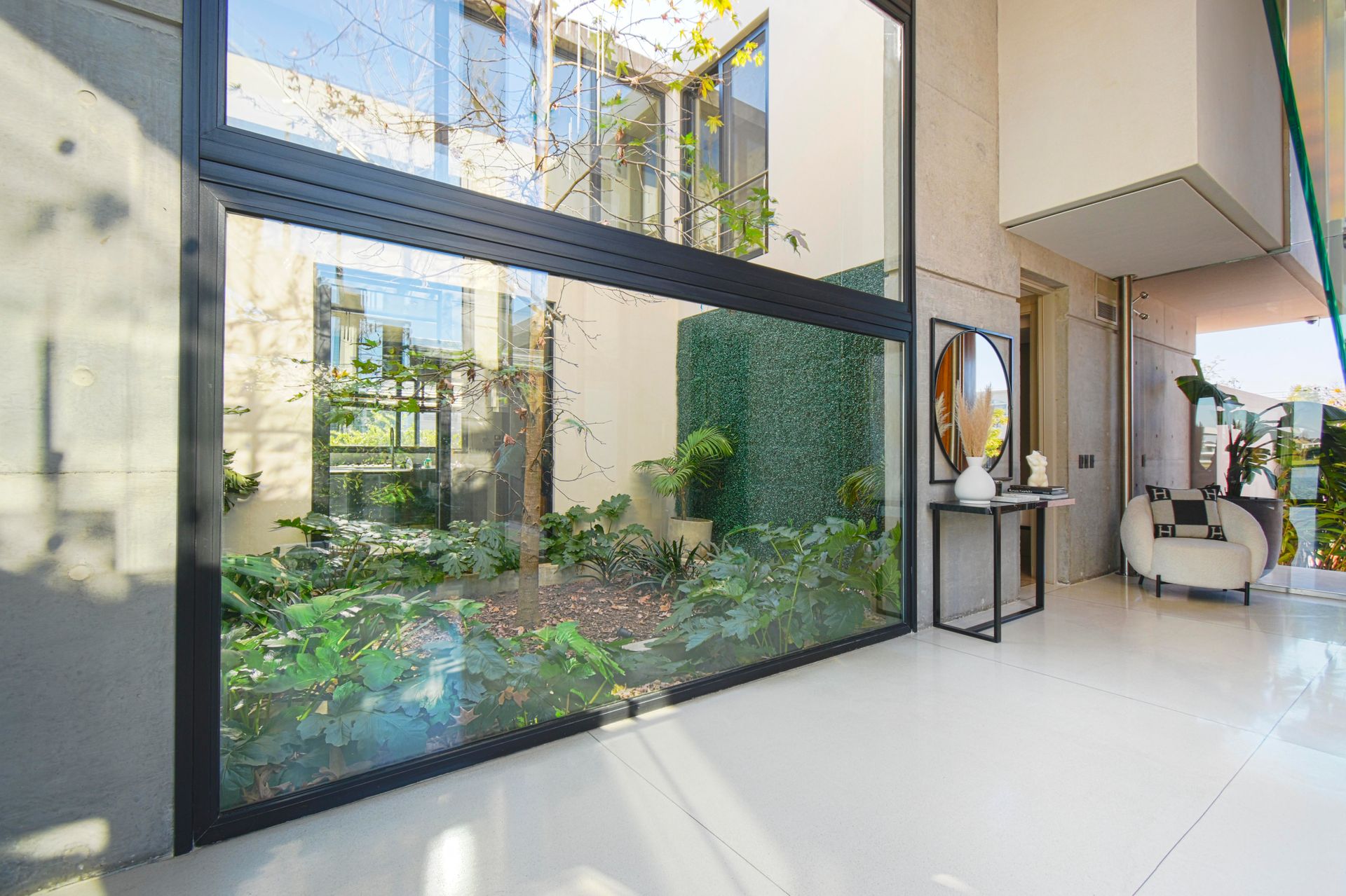 La tecnología se integra en cada detalle: cerraduras biométricas, cerramientos de PVC con DVH para aislamiento térmico y acústico, cámaras de seguridad en toda la propiedad y un sistema de riego por aspersión que garantiza un mantenimiento eficiente.