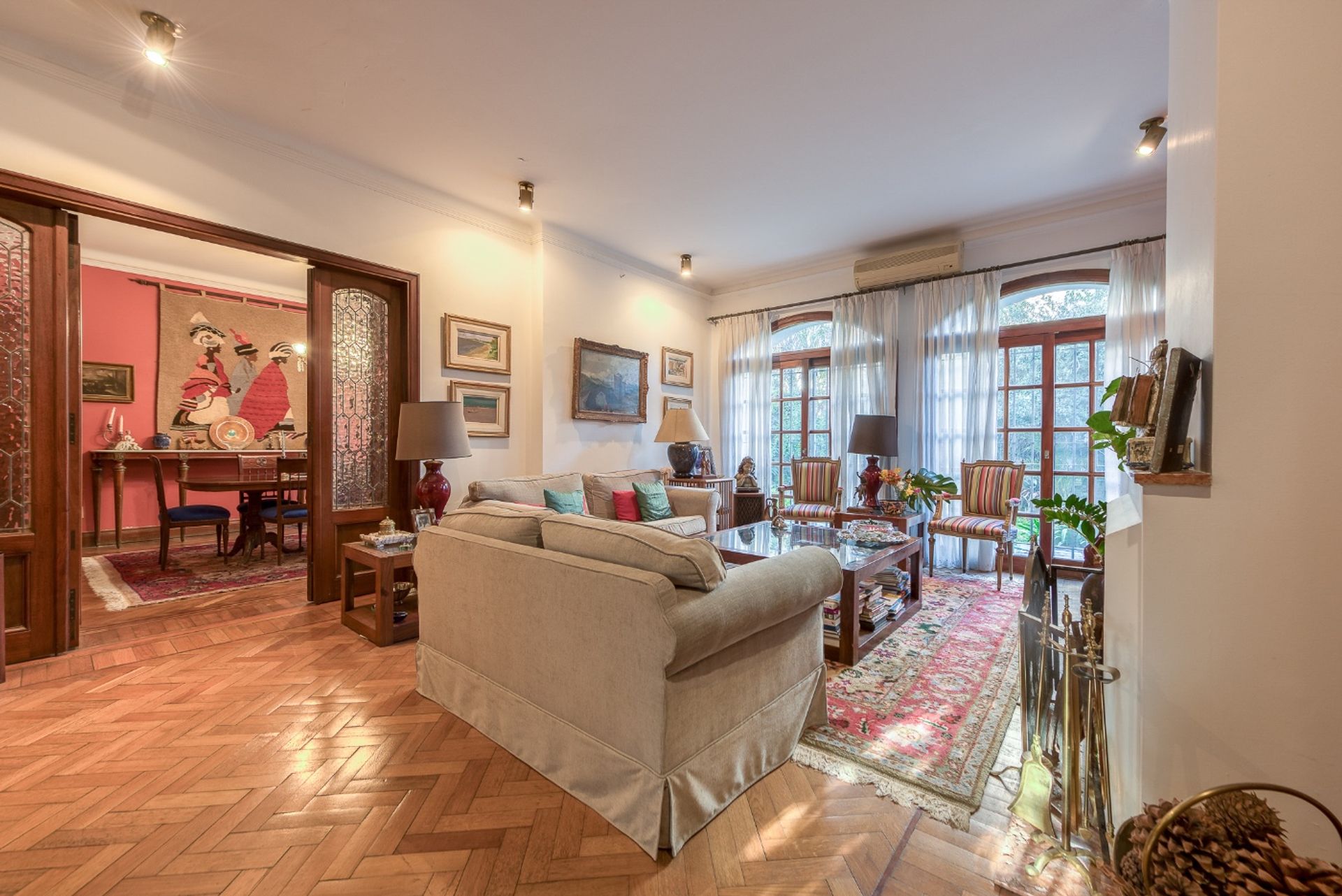Residencia de categoría en La Lucila que combina grandes ventanales, una chimenea acogedora y una armoniosa relación entre interior y exterior, generando un hogar luminoso y confortable. Su amplitud y distribución impecable, junto con la conexión continua con el jardín y el parque arbolado, la distinguen.