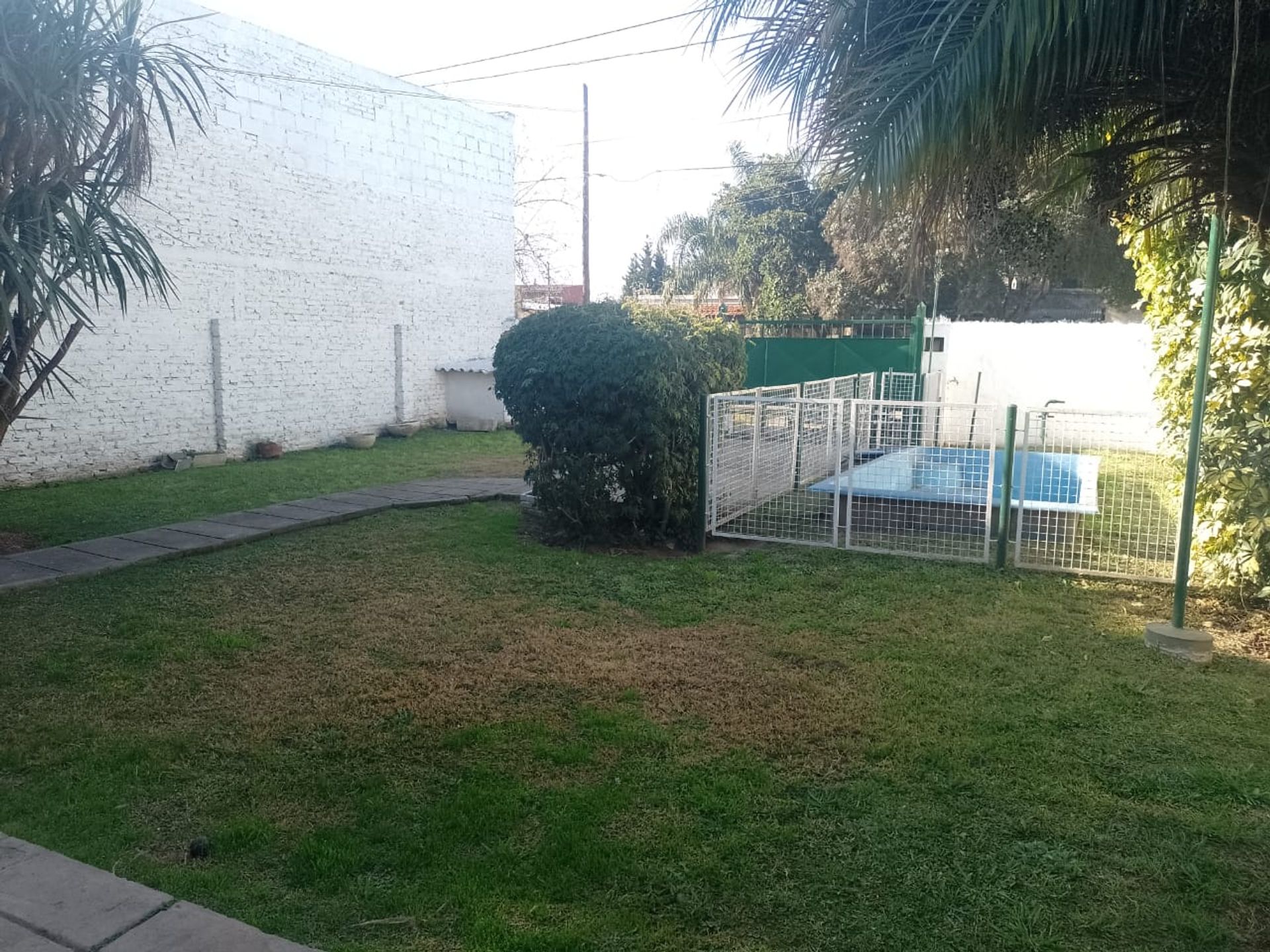 El amplio parque trasero ofrece una experiencia completa al aire libre: una galería, una pileta empotrada de 6 × 3 m con rejas de protección para niños, una cucha de perro construida íntegramente de material, y un espacio dedicado a armar un asador cómodo. Todo esto brinda un escenario perfecto para disfrutar de momentos inolvidables con familiares y amigos.