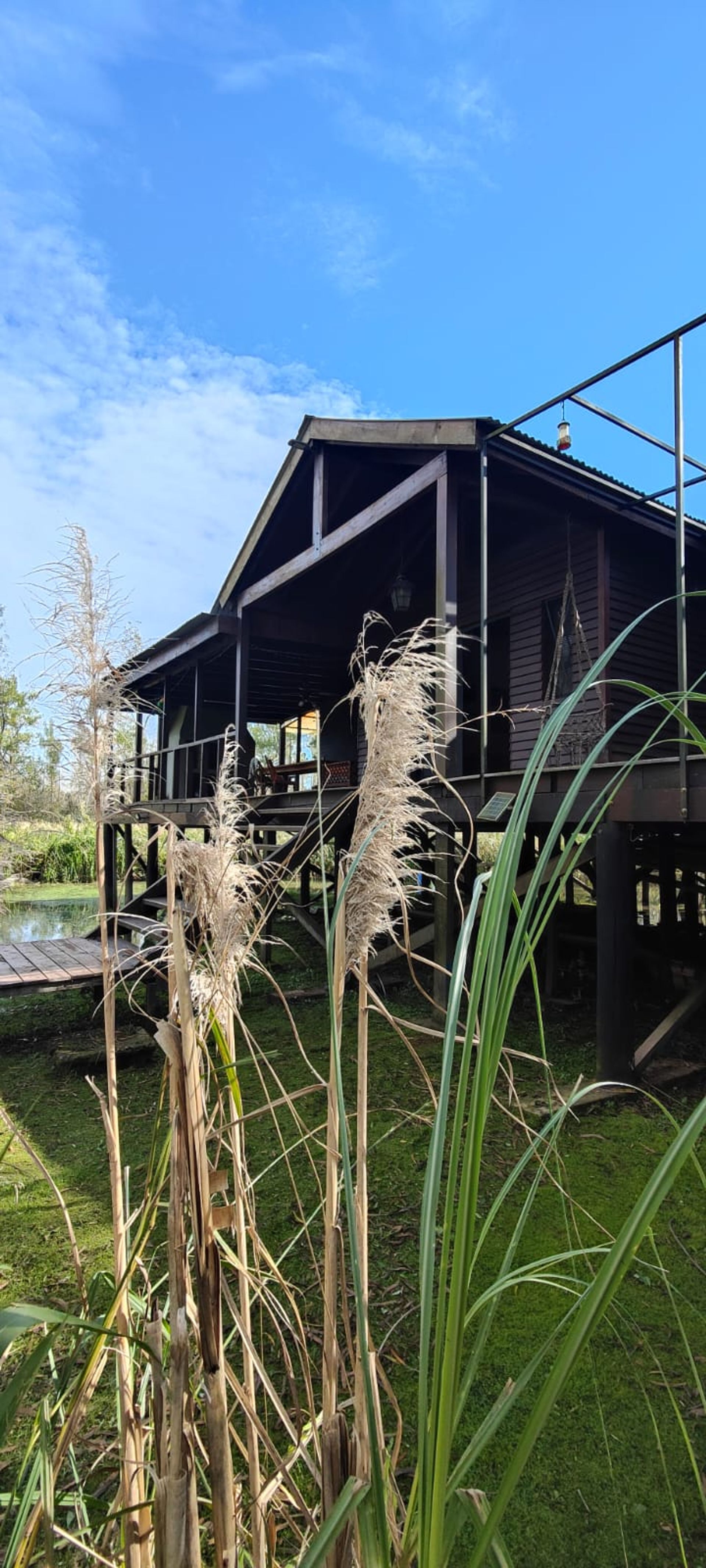 El exterior incluye un deck con parrilla que puede alojar a doce personas o más, tres balcones con deck, y una casa de herramientas de 4 × 3 metros. Además, cuenta con muelle propio y desembarcación, ideal para actividades acuáticas.