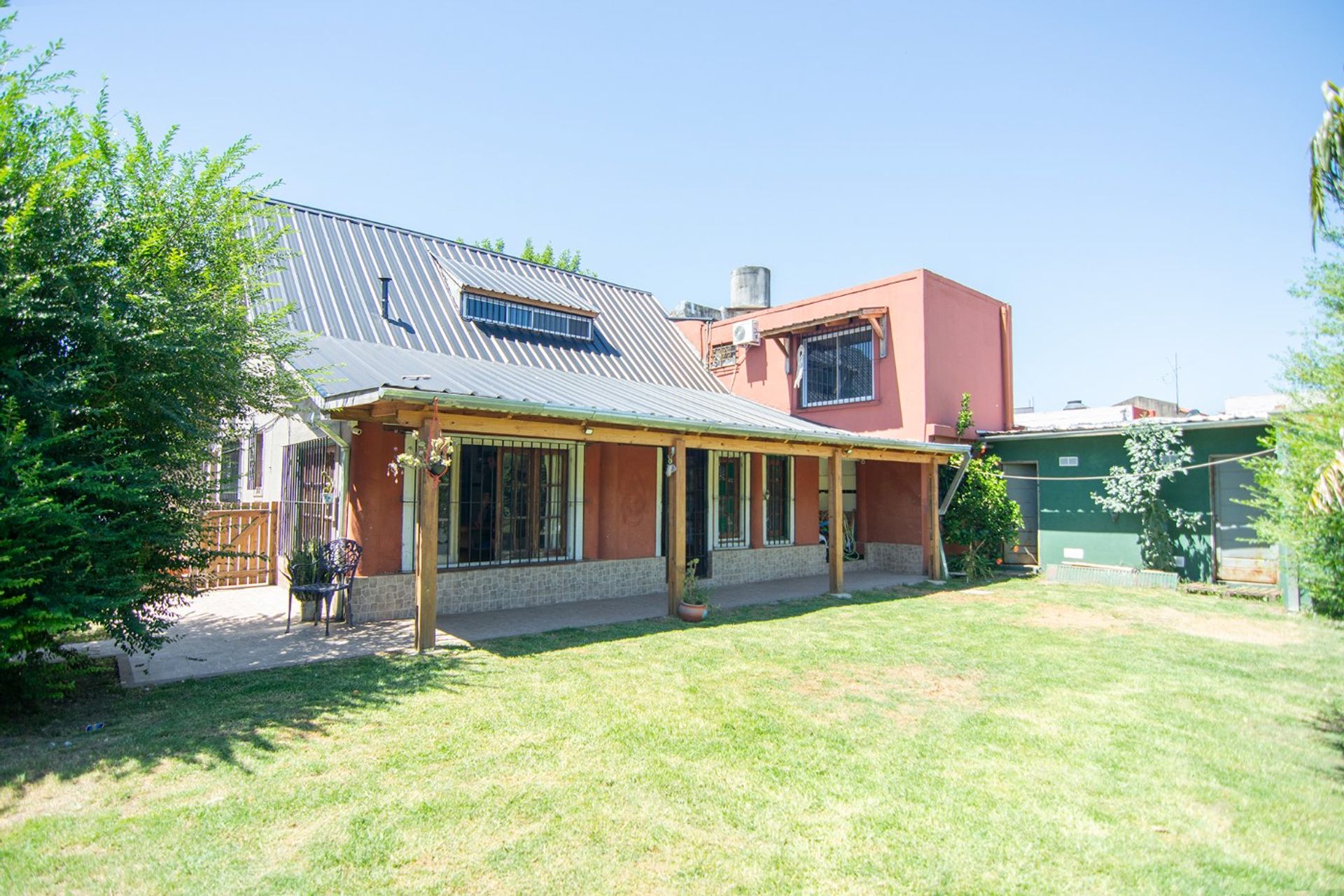 El exterior presenta un amplio jardín despejado, perfecto para actividades al aire libre. En un lateral se encuentra un quincho cerrado de 6,50 m × 3,50 m, equipado con las instalaciones necesarias para disfrutar al máximo los momentos de ocio. En el frente, el garaje pasante protege dos vehículos y está cerrado con un portón coredizo, brindando seguridad y accesibilidad.