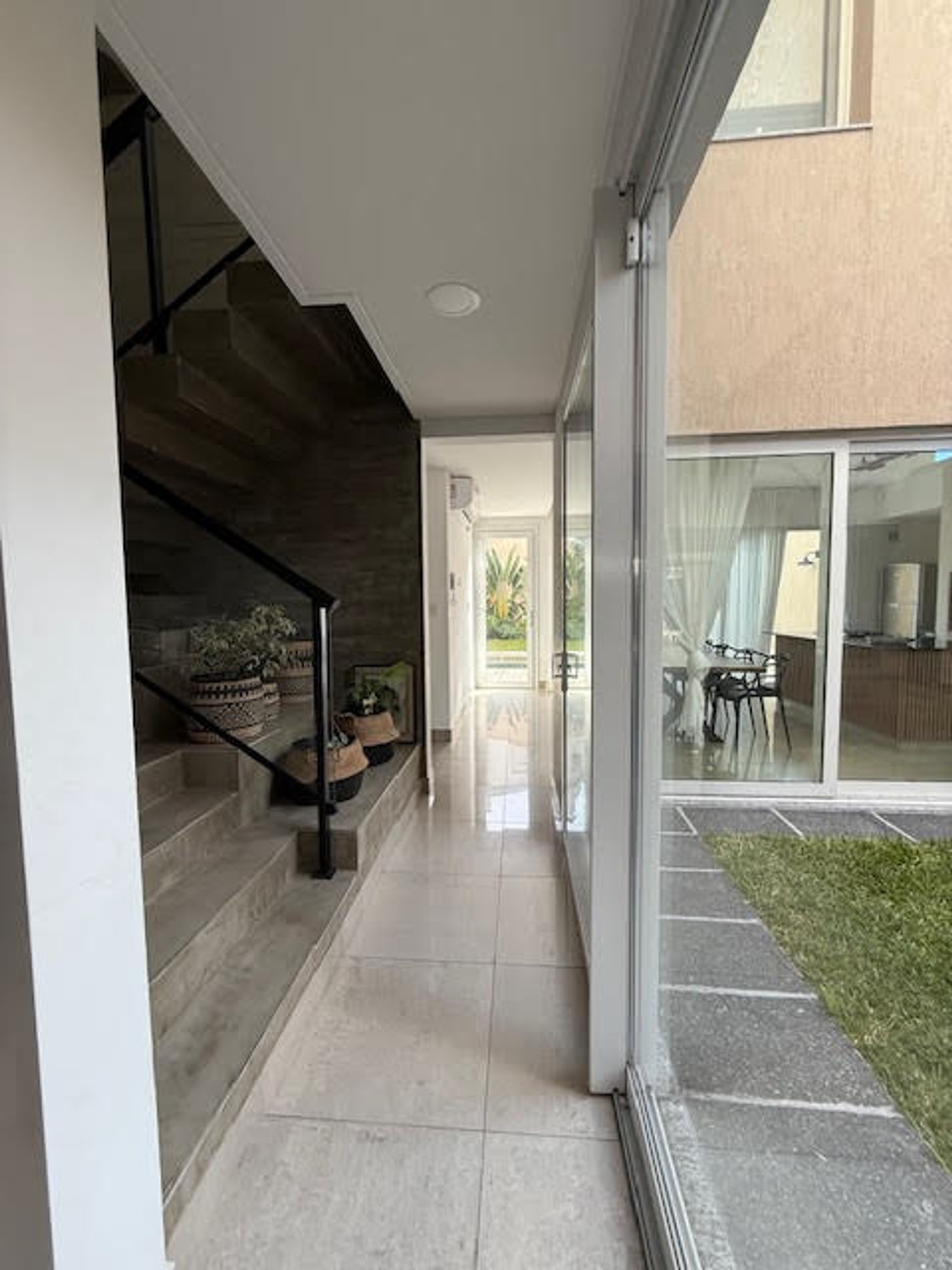 En la planta baja se encuentra un garage cubierto para dos vehículos y un espacio descubierto adicional. Un amplio quincho cerrado, climatizado con aire acondicionado frío/calor, incluye parrilla, bacha y cocina integrada. La piscina climatizada con solárium y el baño completo con ducha, junto a la sala de máquinas, ofrecen un entorno de ocio y comodidad.